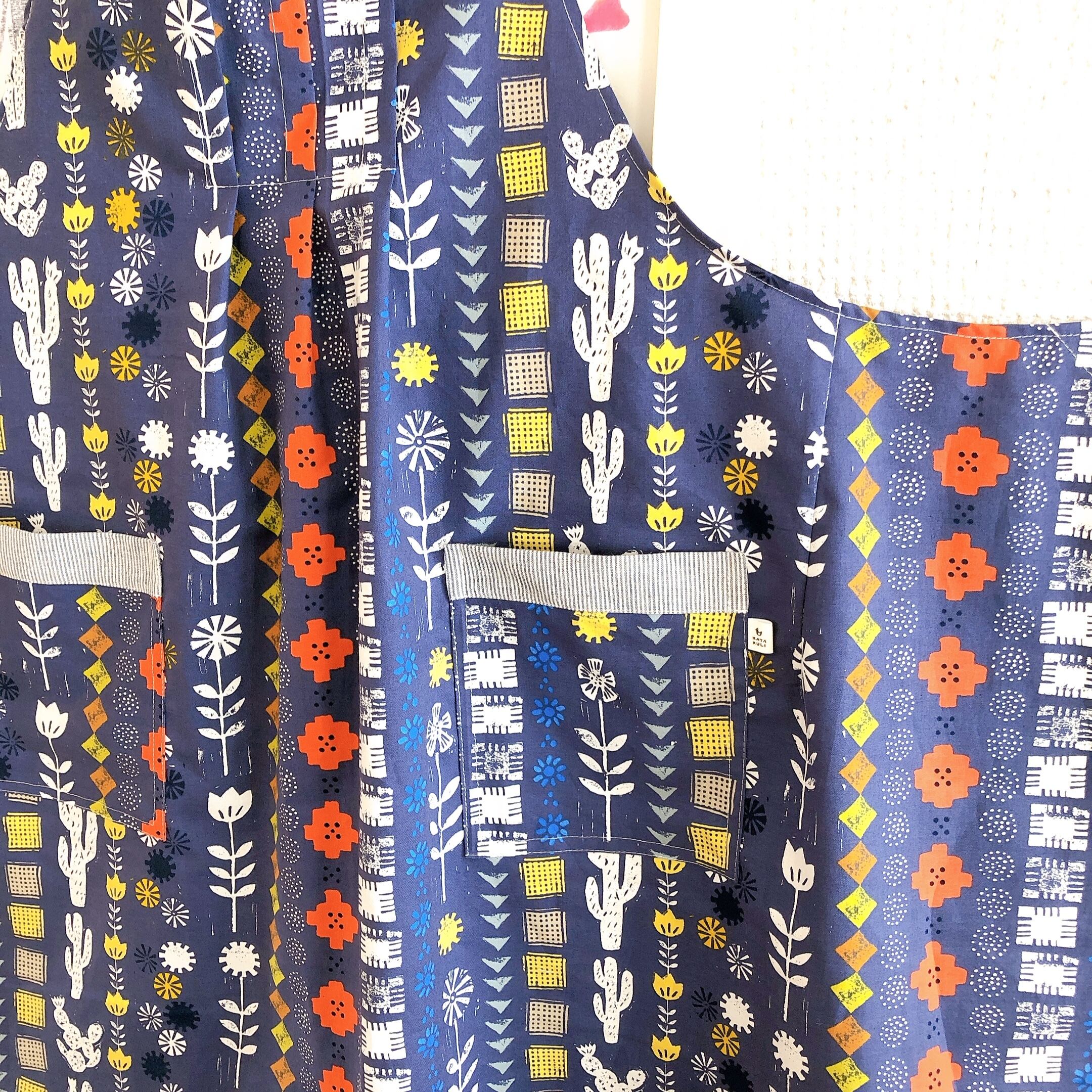 胸タックのふんわりエプロン(ネイビー)