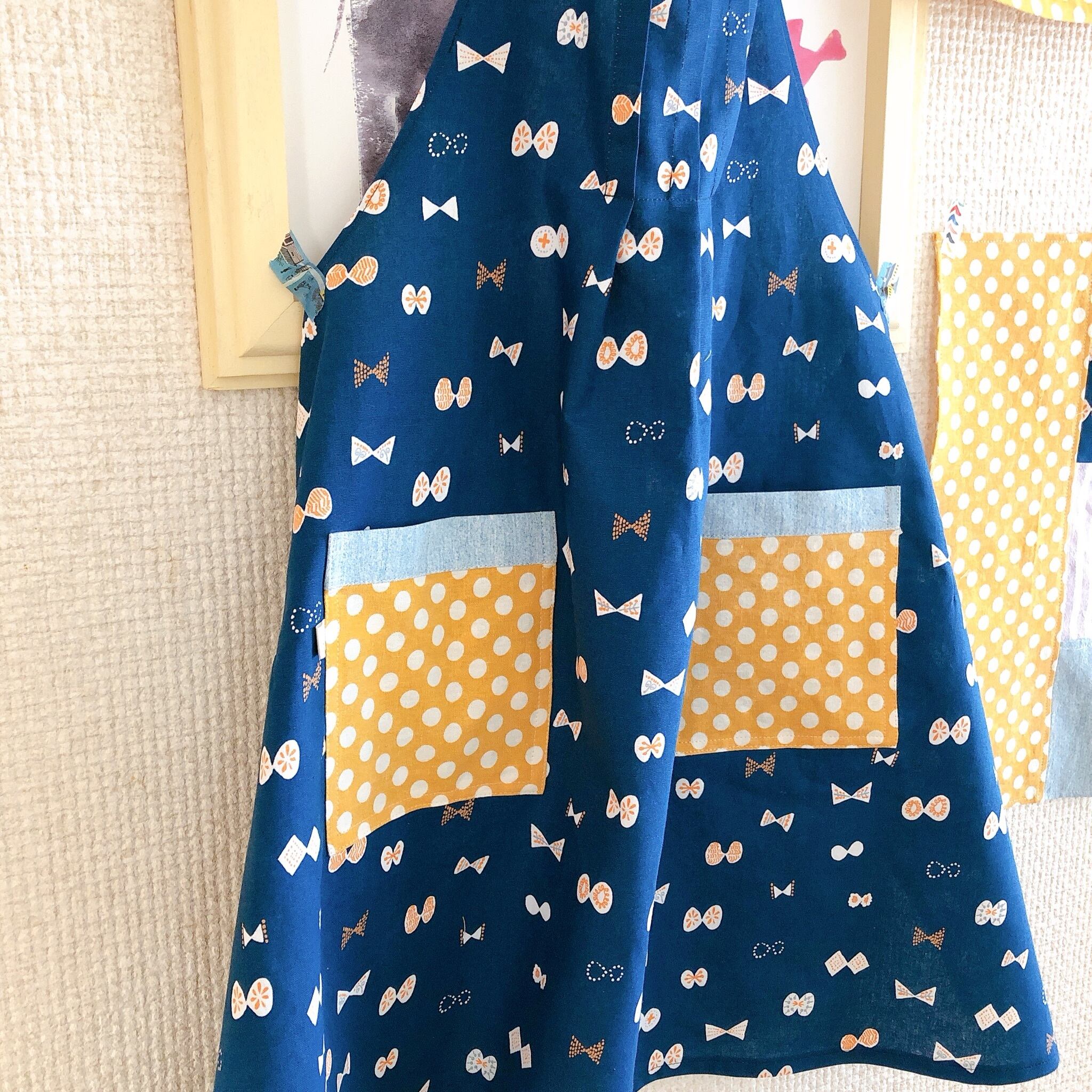 【オーダーのお品】エプロン4点セット(紺リボン)