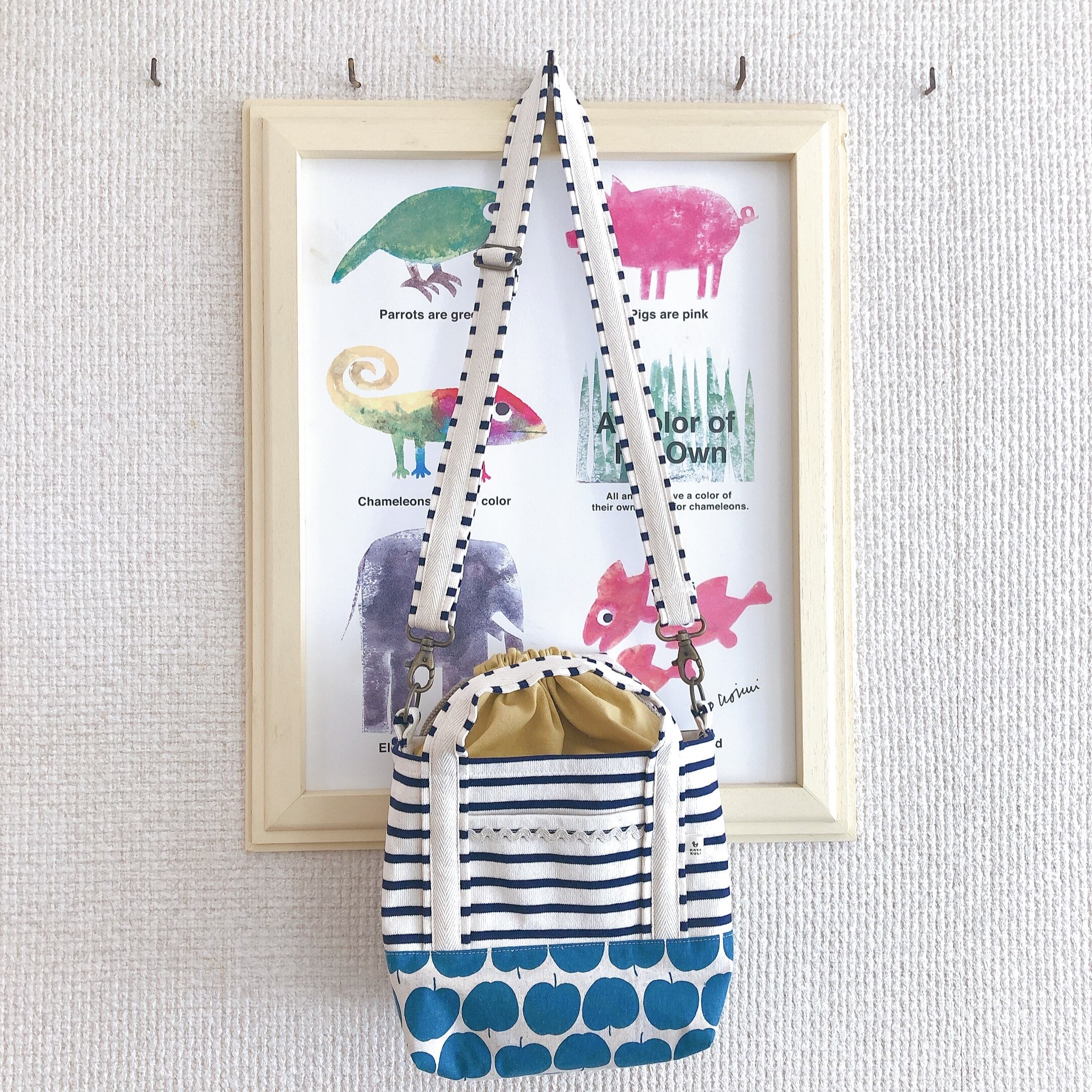 2way*巾着付き★ミニトートバック(ボーダー×リンゴ)