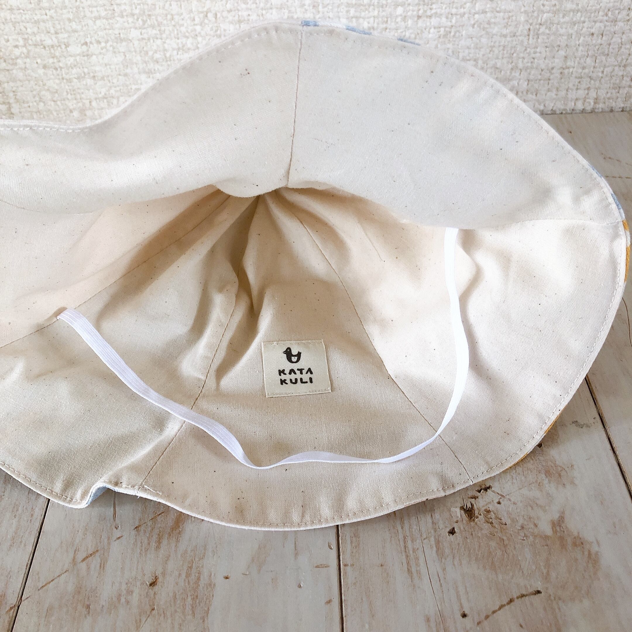 相性の良い3色の生地を組み合わせてチューリップハットにしました。