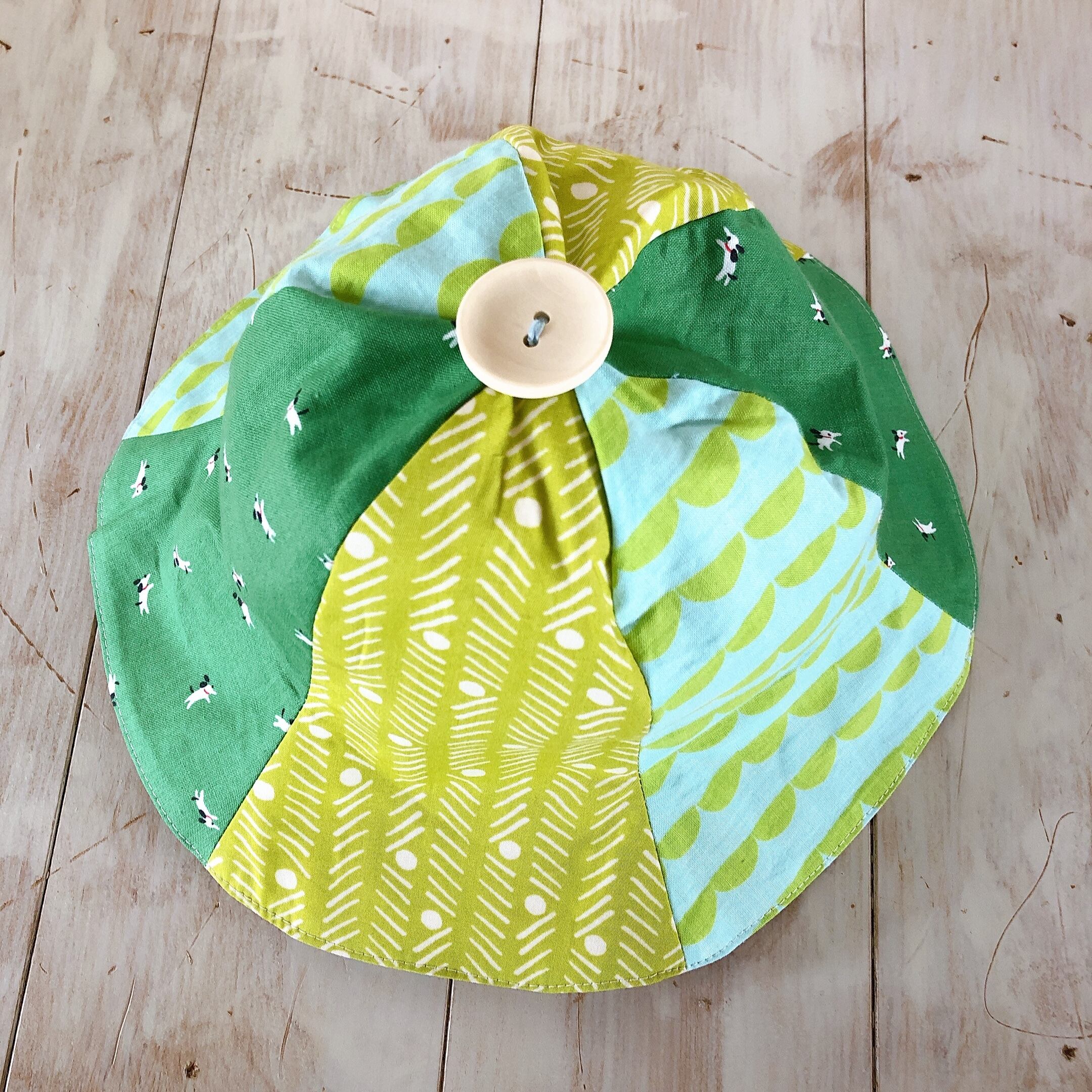 相性の良い3色の生地を組み合わせてチューリップハットにしました。