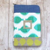 大きな母子手帳ケース*写真ポケット付き*ファスナー開き*A5サイズ*さかな・ミント