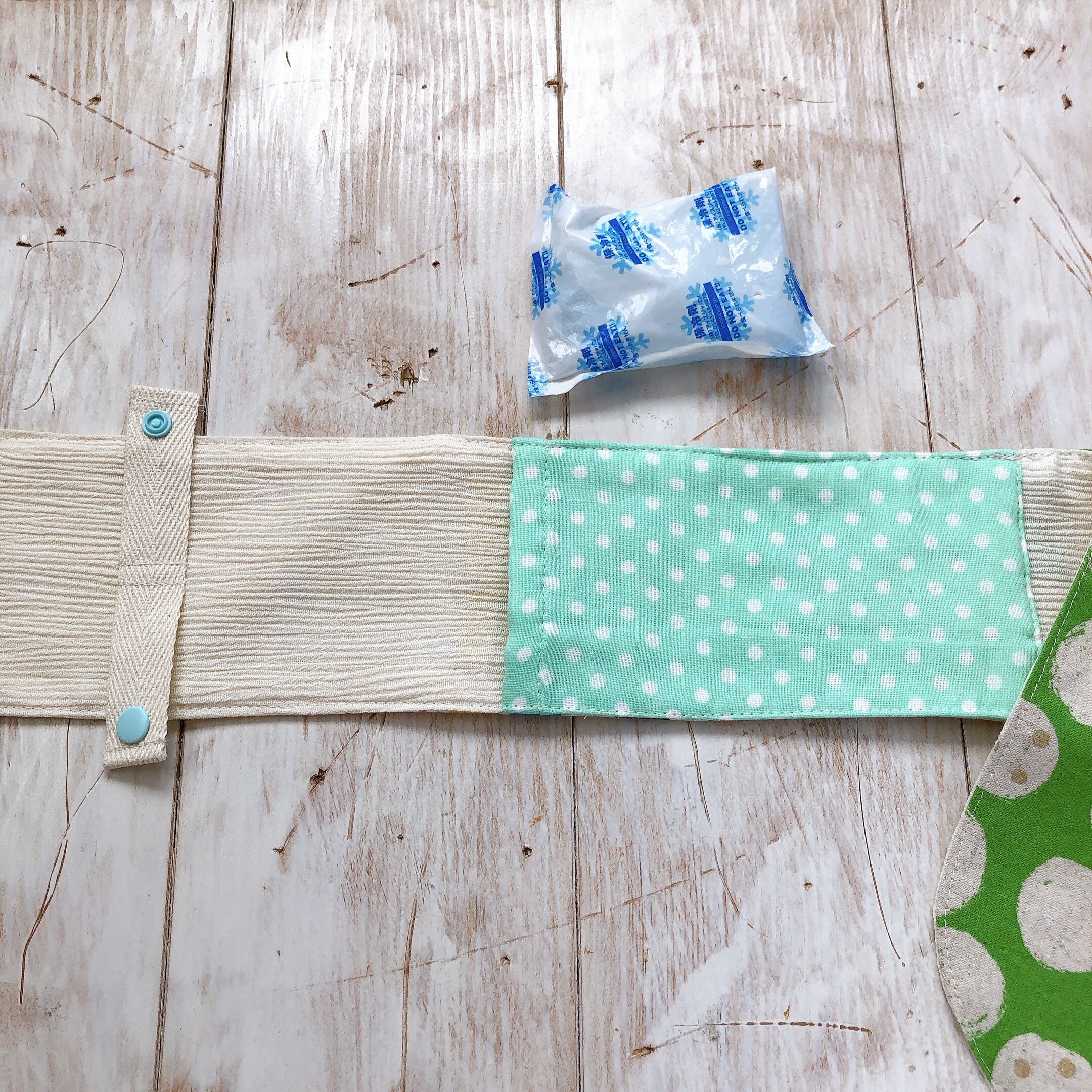 ポケットの素材はダブルガーゼと薄手の綿の生地を二枚重ねにしています。