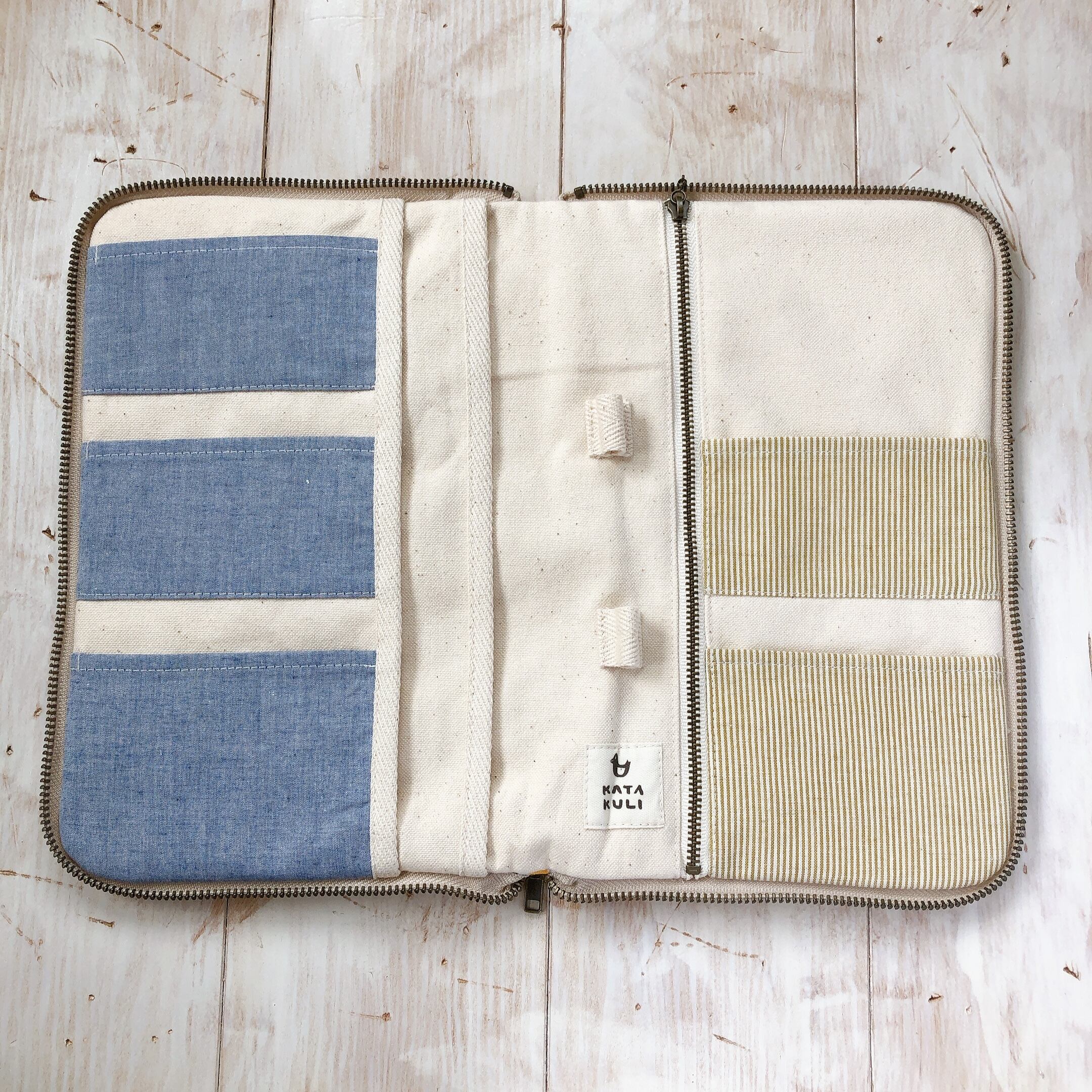 ケースがパカっと全開になるように、ファスナー止まりの部分に工夫をしています。