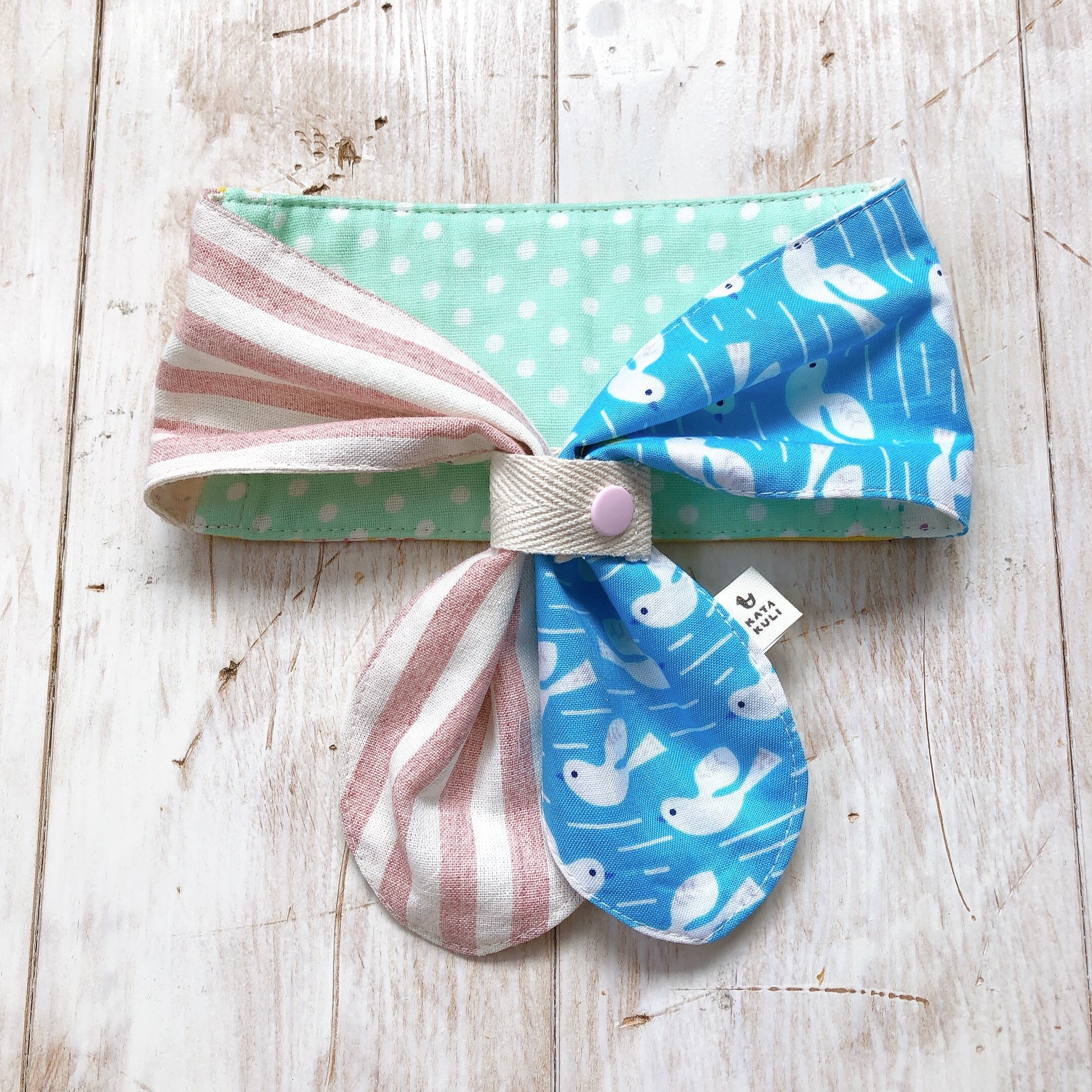 ボーイスカウトのように小さ目なスカーフを巻いているように見えますので