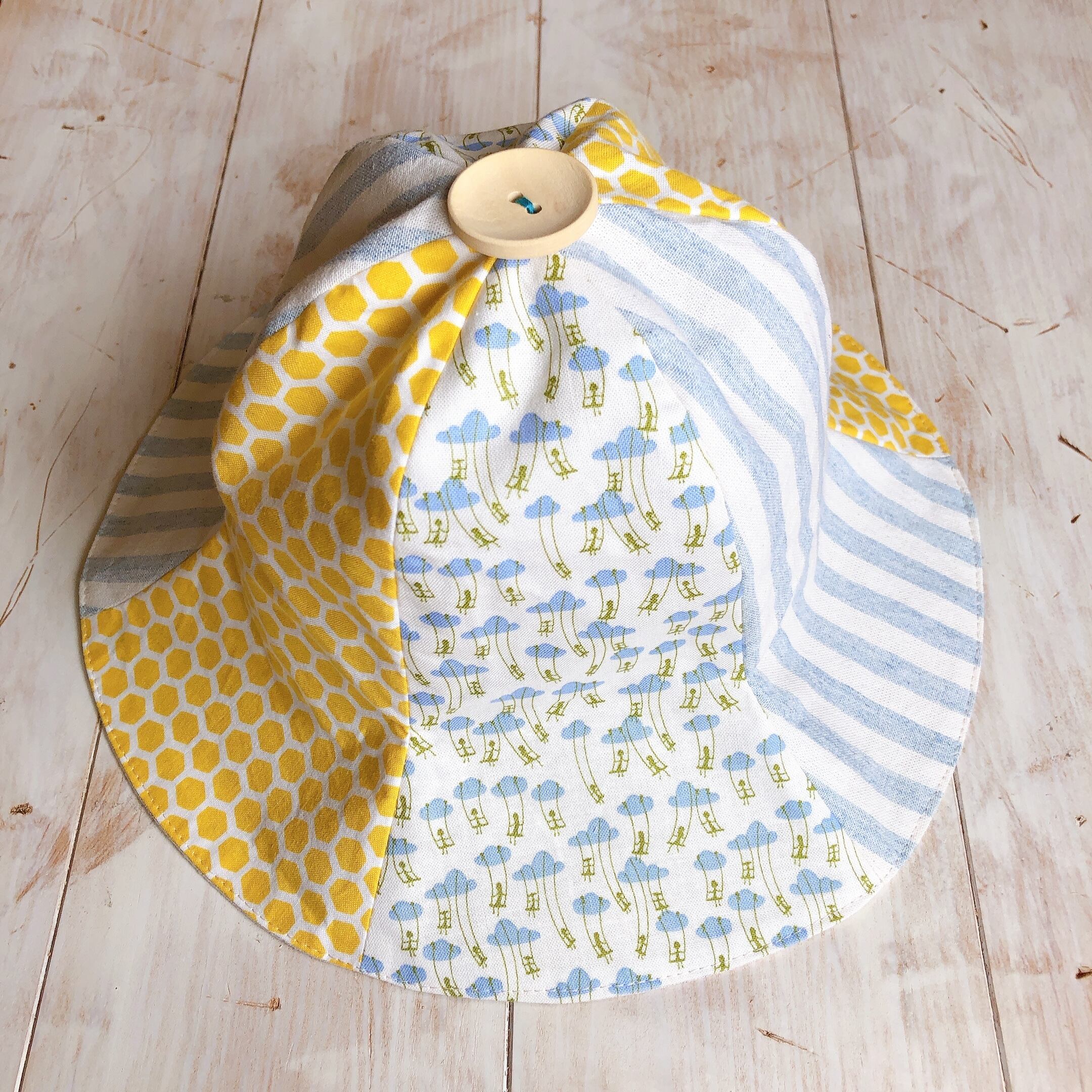 相性の良い3色の生地を組み合わせてチューリップハットにしました。