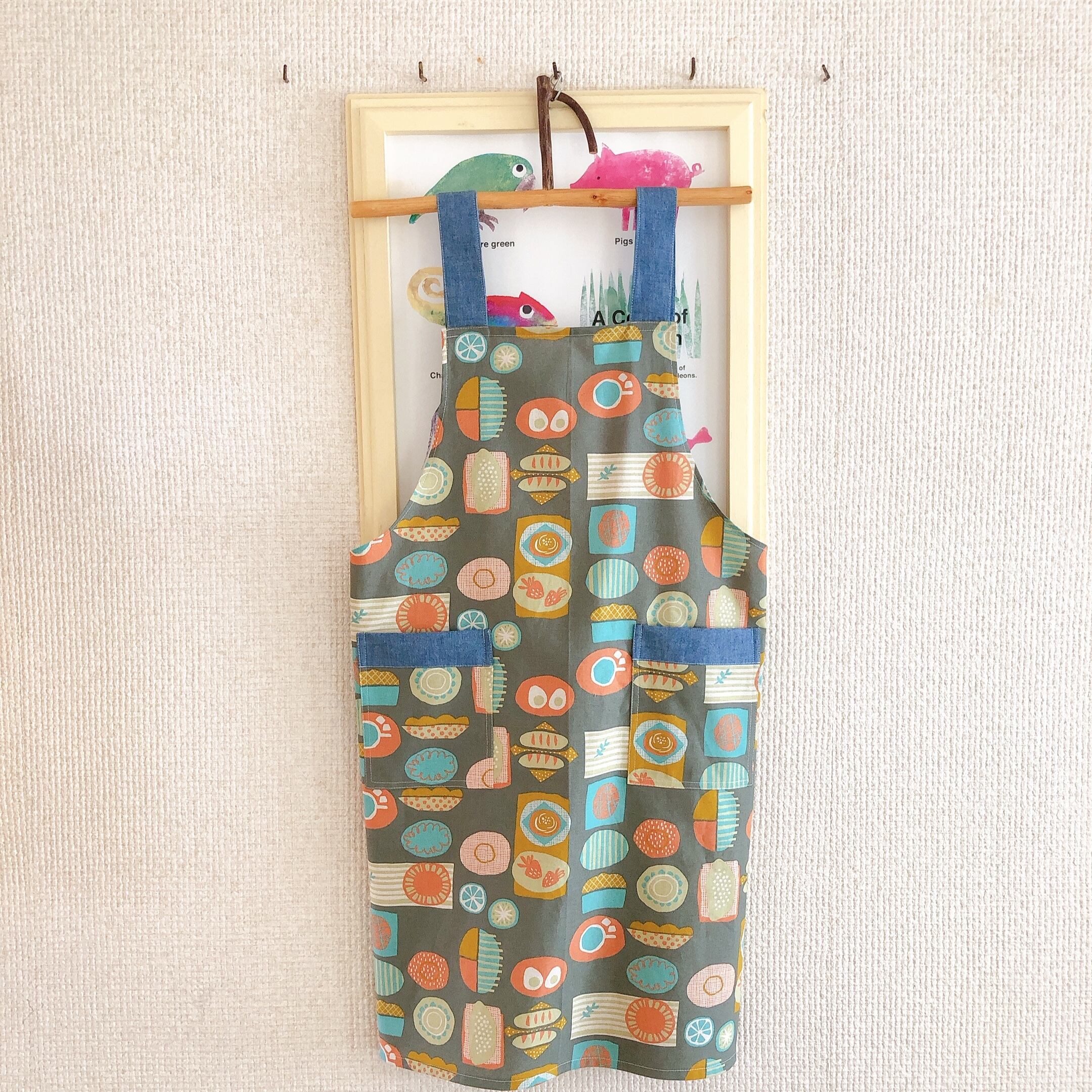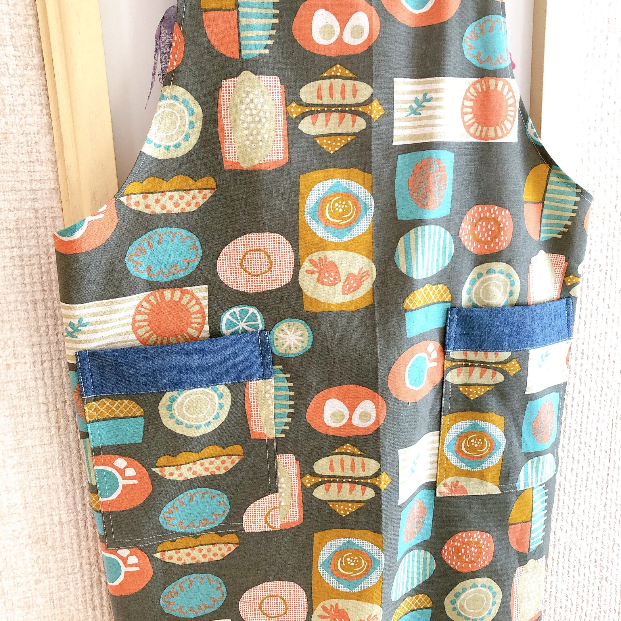 肩ひも後ろはHの形。おとなエプロン(キッチン・グレー)