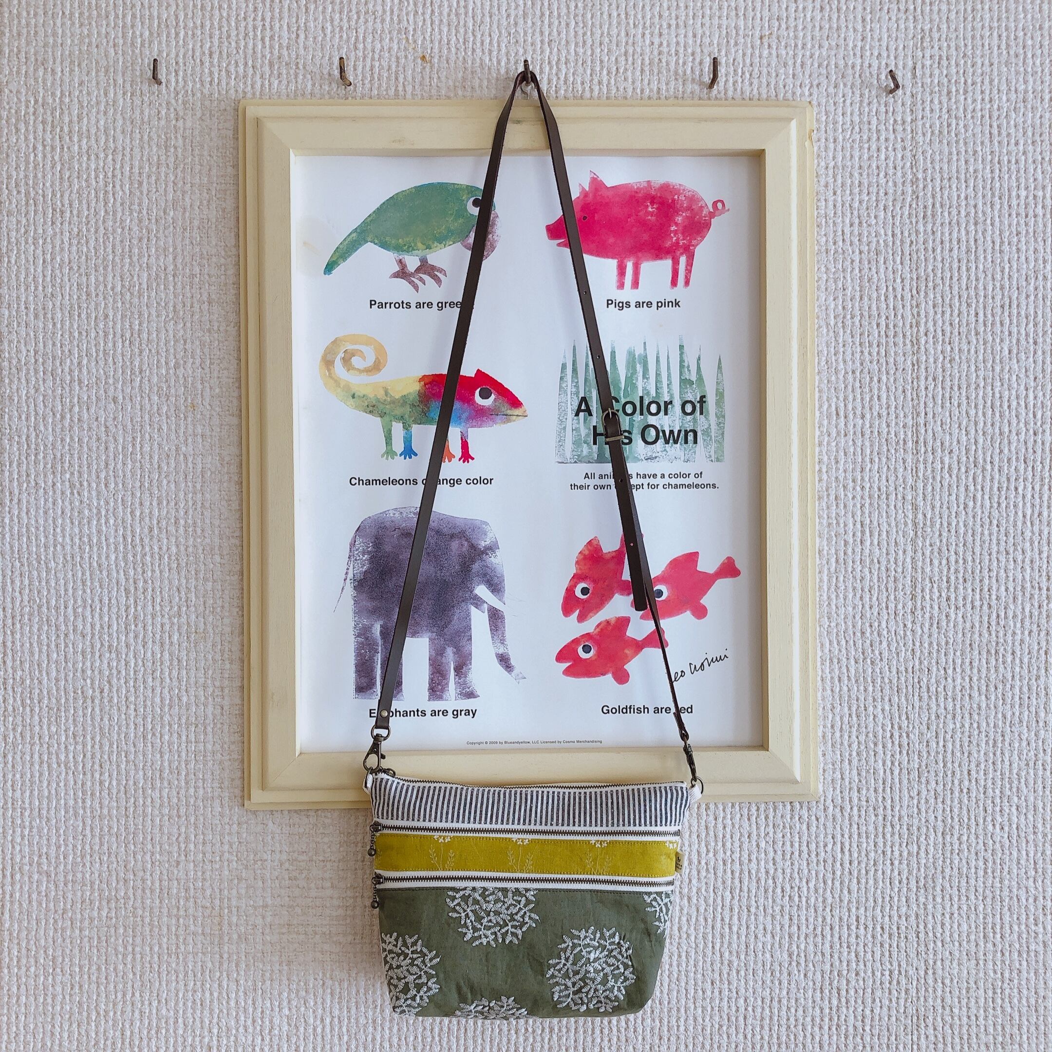 マチ付き3ファスナーポーチ*ポシェットにも♪(刺繍・カーキ)