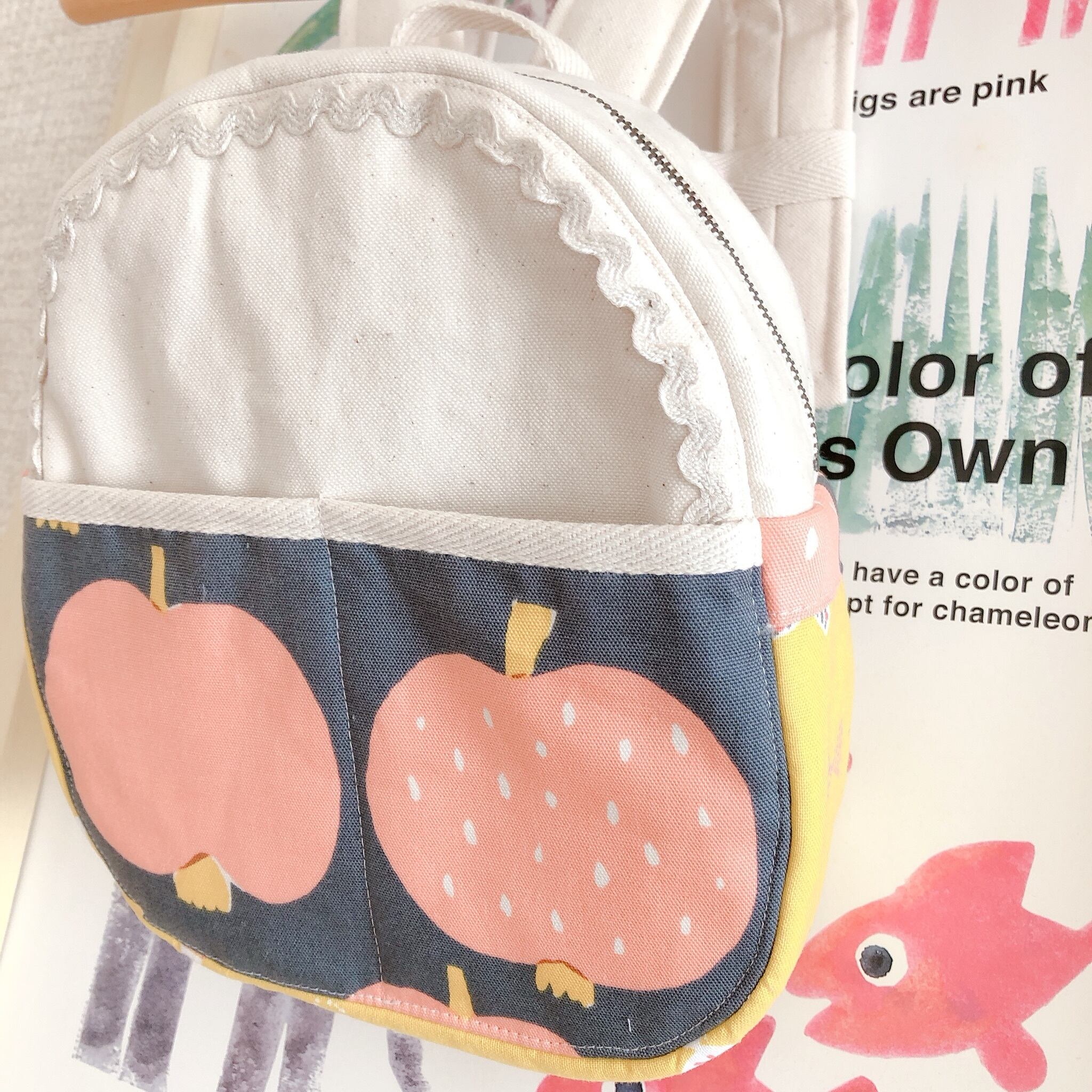 赤ちゃんファスナーリュック☆チェストストラップつき(ピンクりんご)