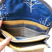 カードがすっきり収納★長財布(木と鳥ブルー×ネイビードット)