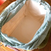 巾着の紐をぎゅっとしめると、中のものもこぼれず