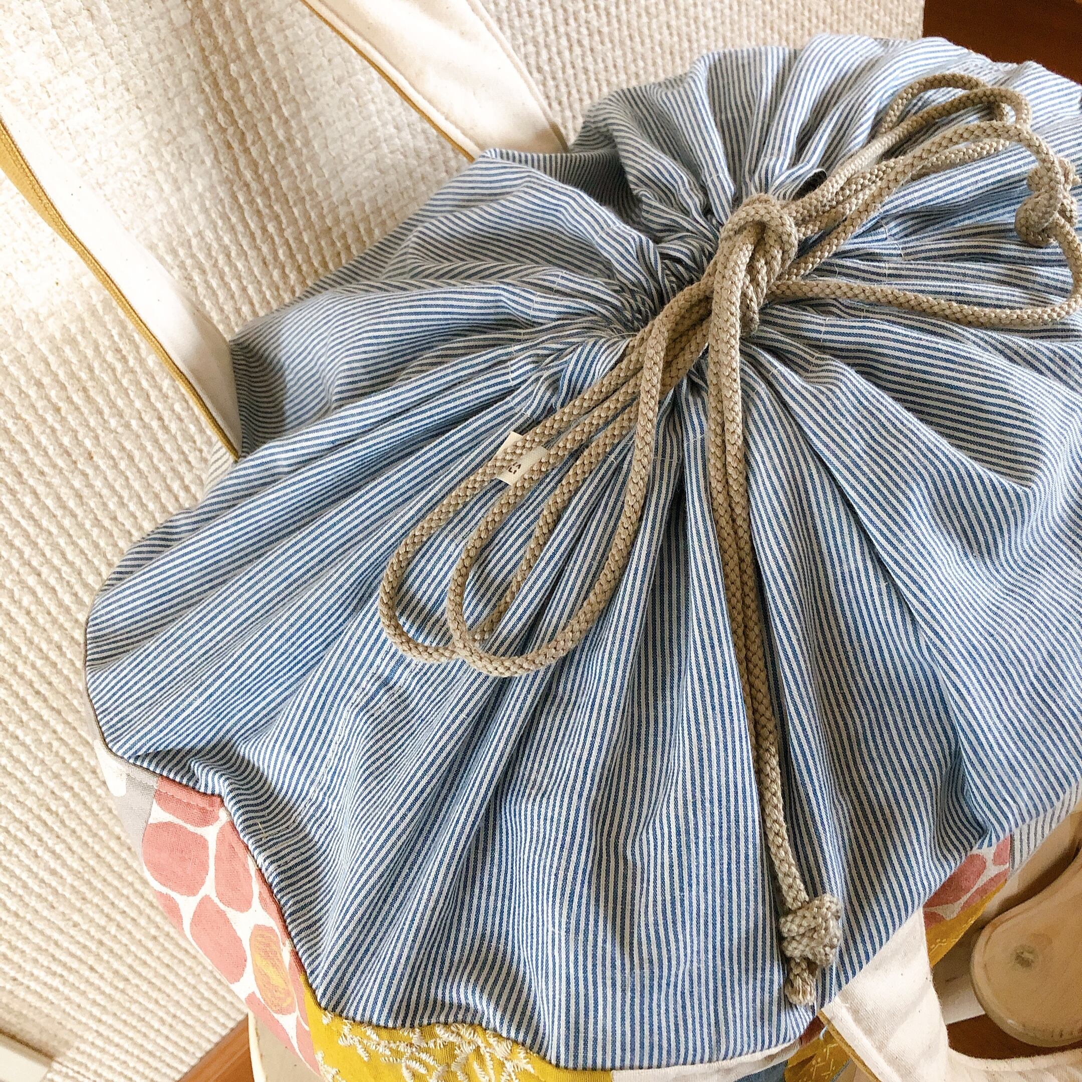 巾着の紐をぎゅっとしめると、中のものもこぼれず