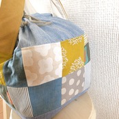 レジかごサイズのパッチワークなエコバック(キイロ×ドットmix)