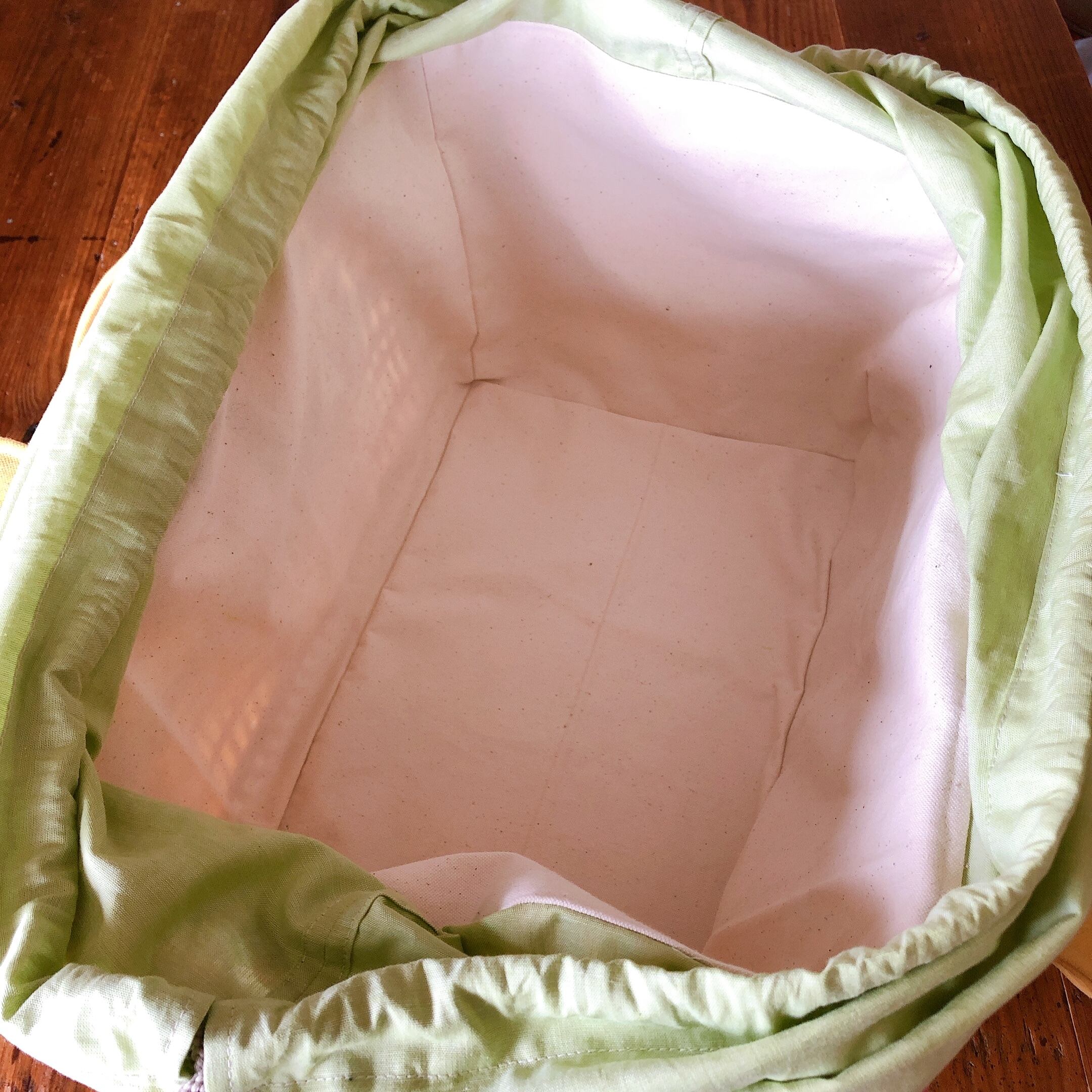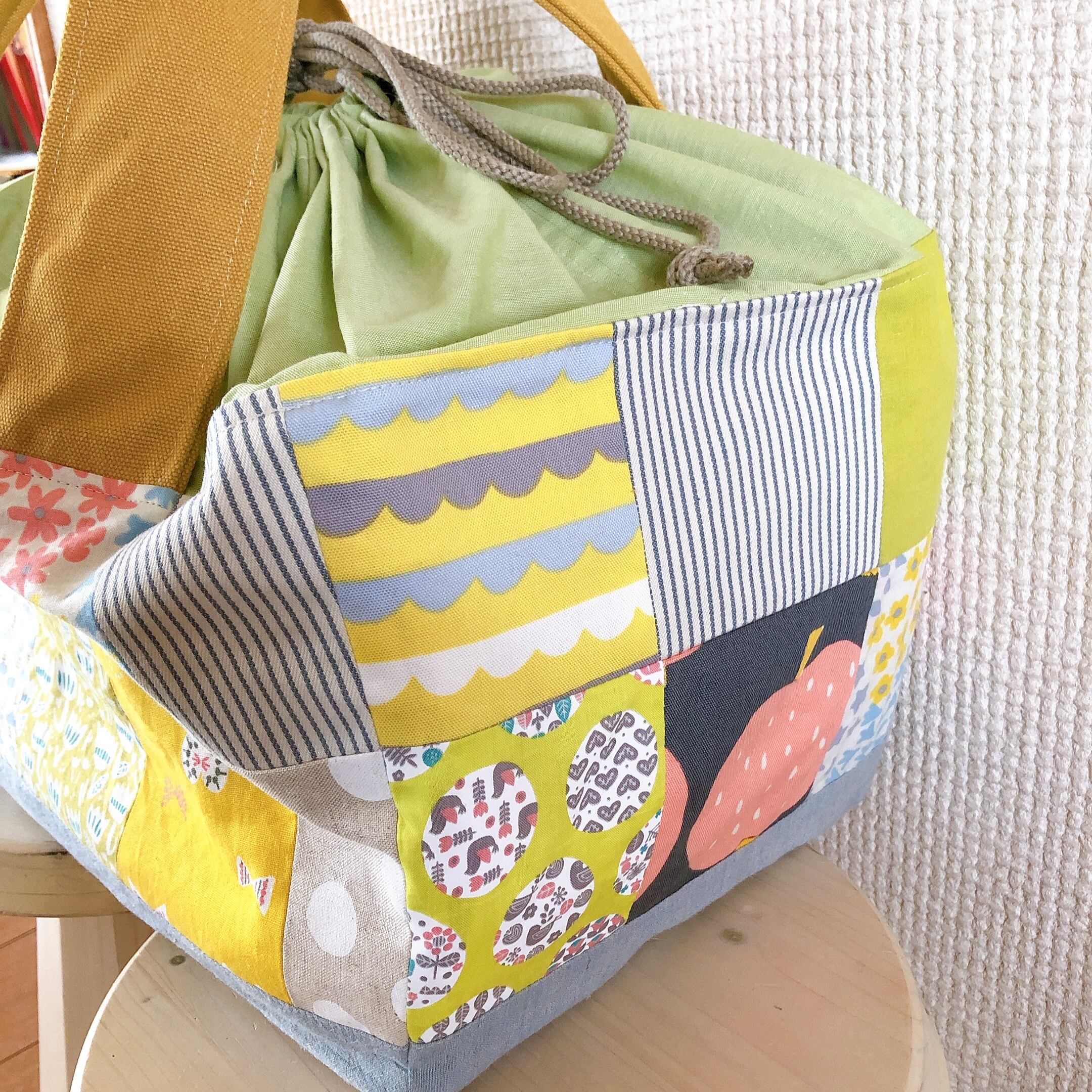レジかごサイズのパッチワークなエコバック(キイロ×リンゴmix)