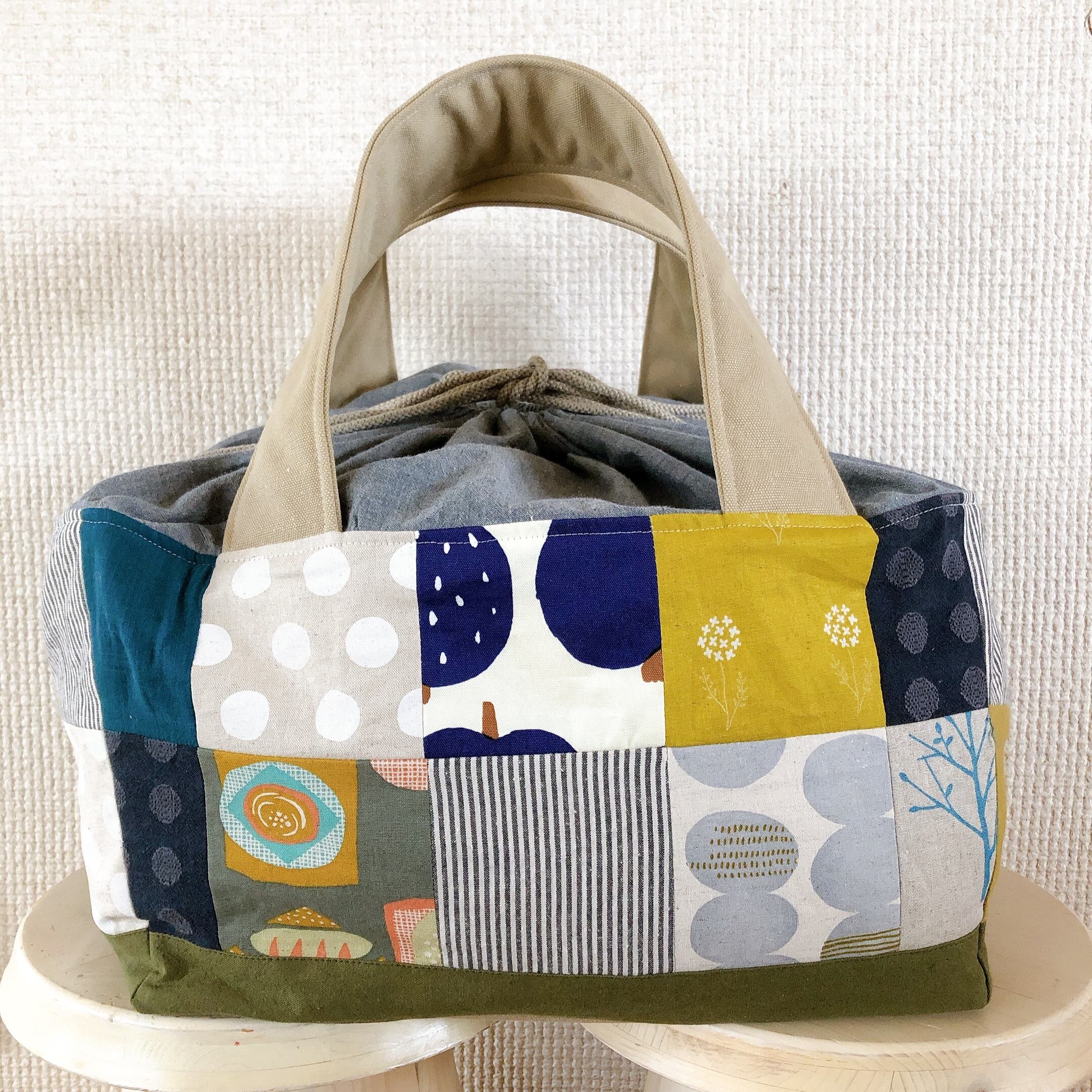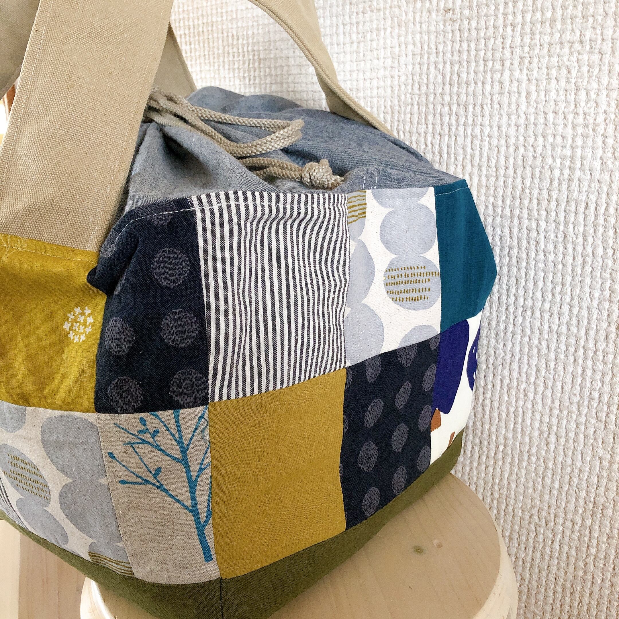 レジかごサイズのパッチワークなエコバック(ベージュ×グレーmix)