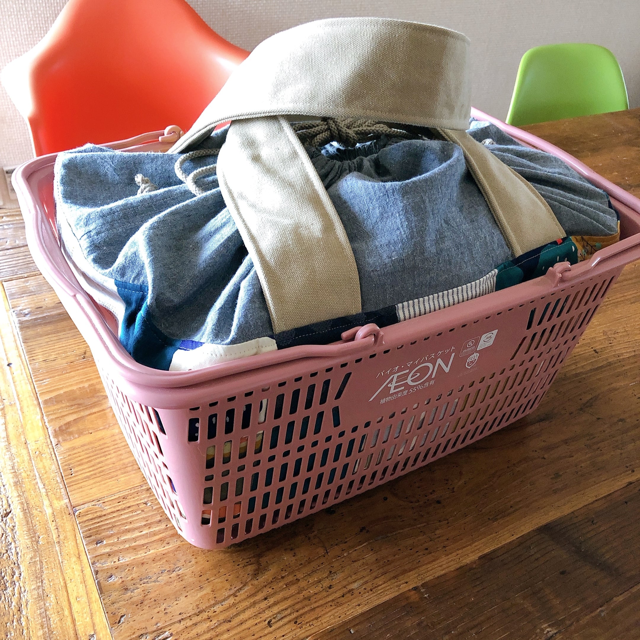 巾着の紐をぎゅっとしめると、中のものもこぼれず