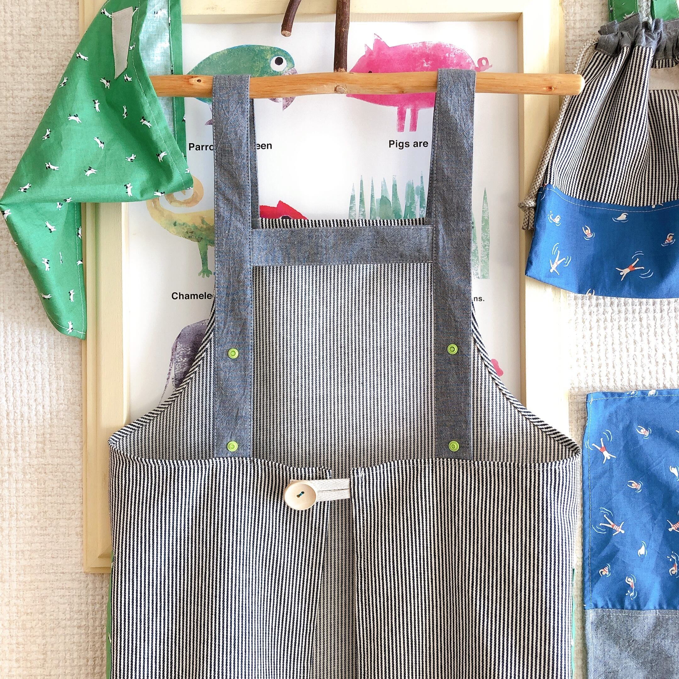 と思い、お年頃な高学年さんに気に入ってもらえそうな生地でエプロンを作りました。