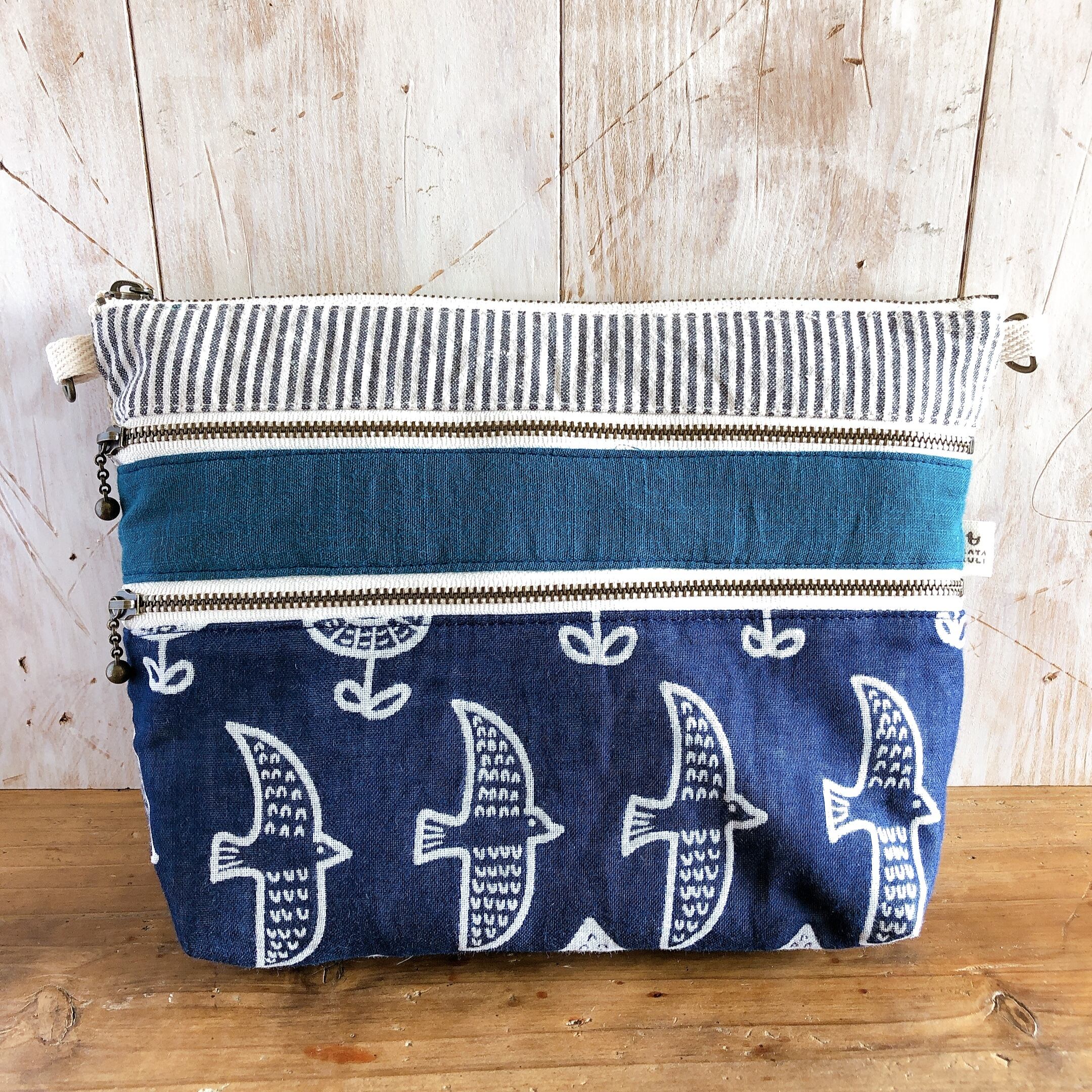 マチ付き3ファスナーポーチ*ポシェットにも♪(バード×ぐるぐる)