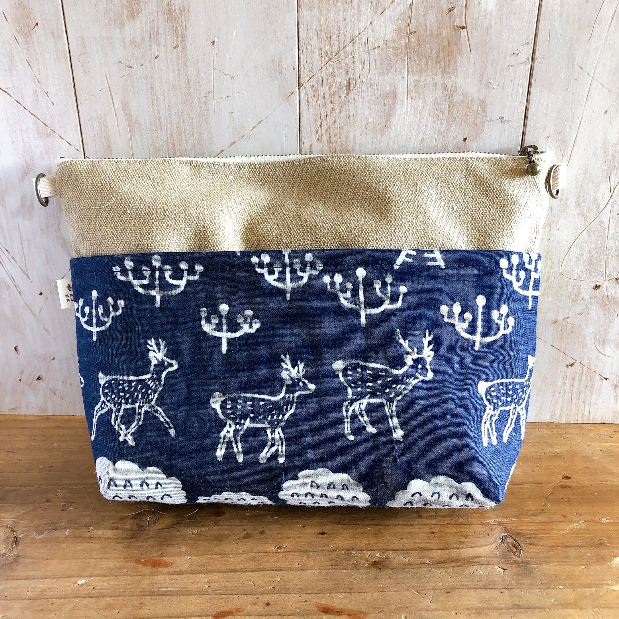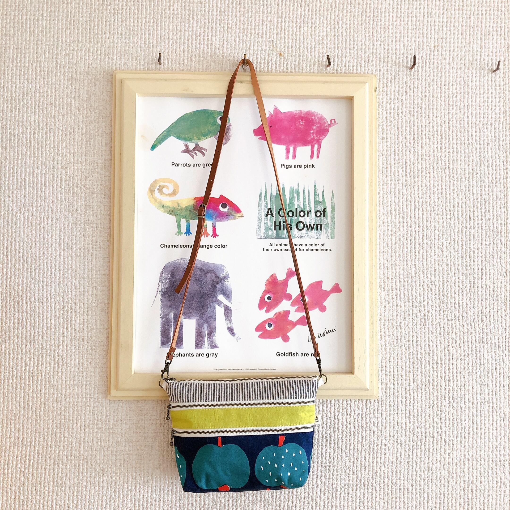 マチ付き3ファスナーポーチ*ポシェットにも♪(青りんご×鹿)