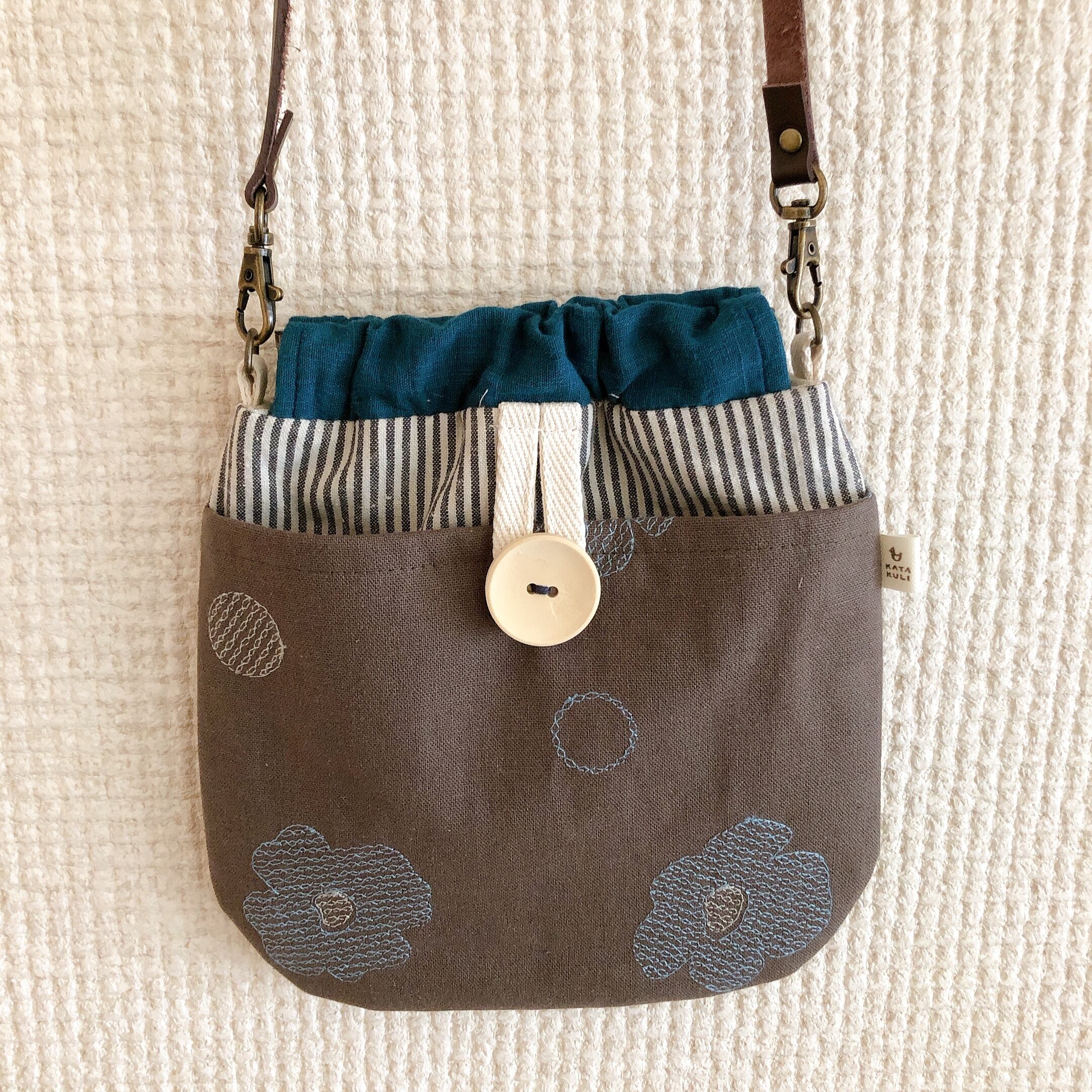 本革ストラップのまあるいサコッシュ(刺繍おはな)