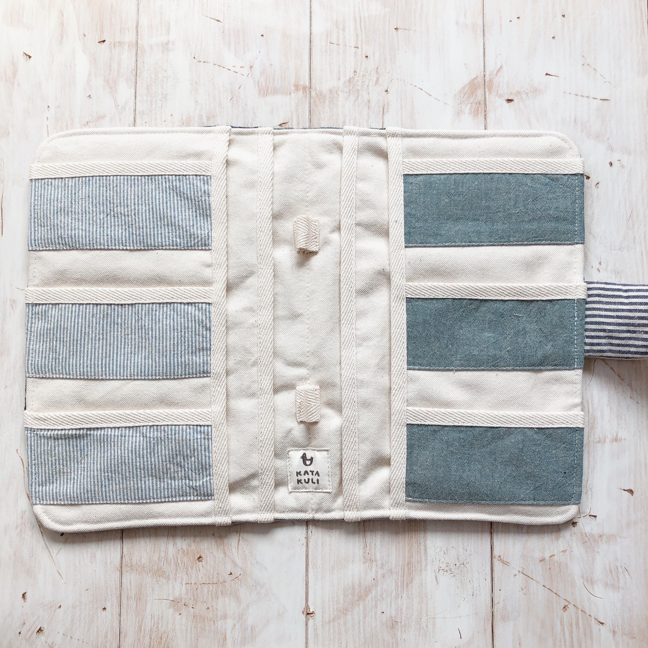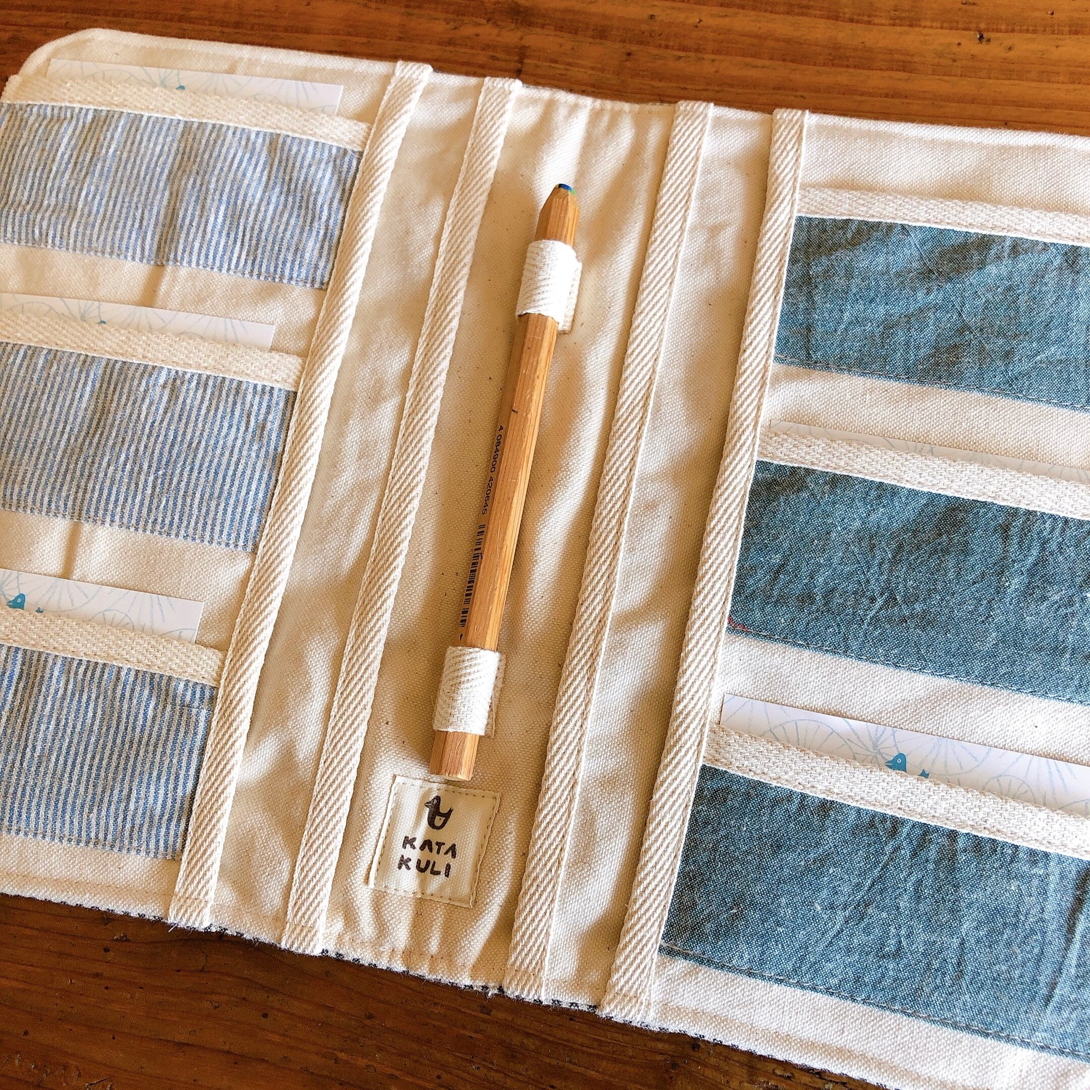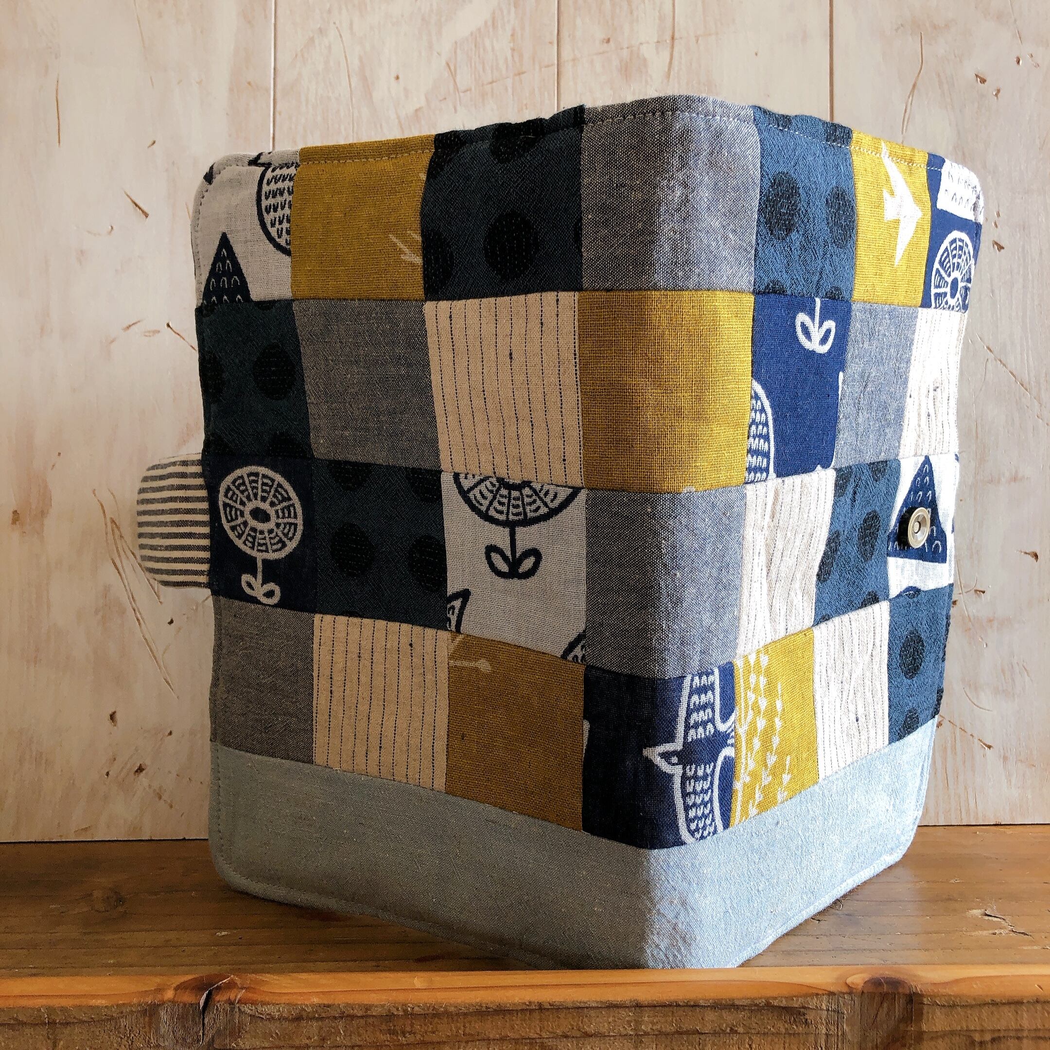 パッチワークの大きめマルチケース(A5サイズ):ネイビーmix