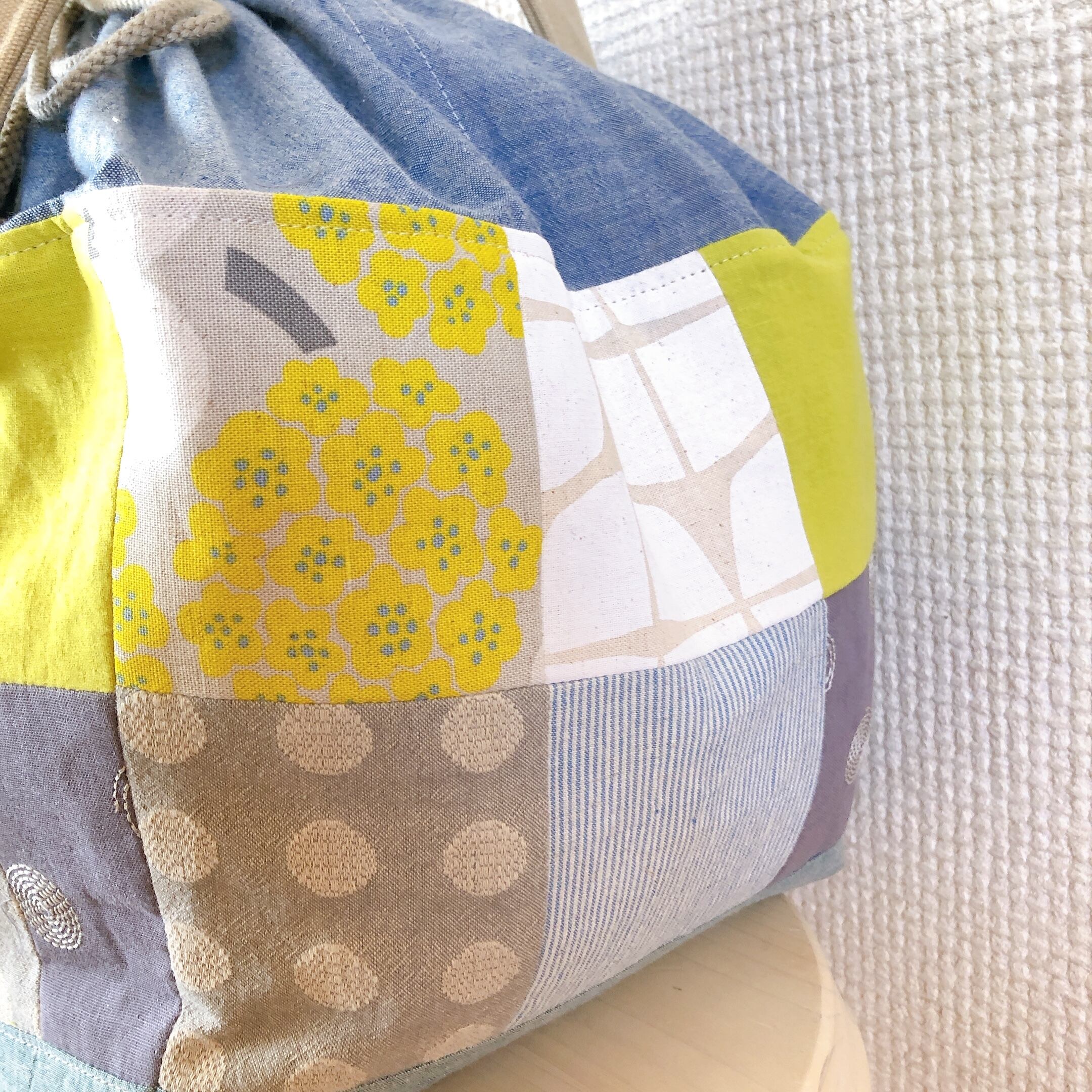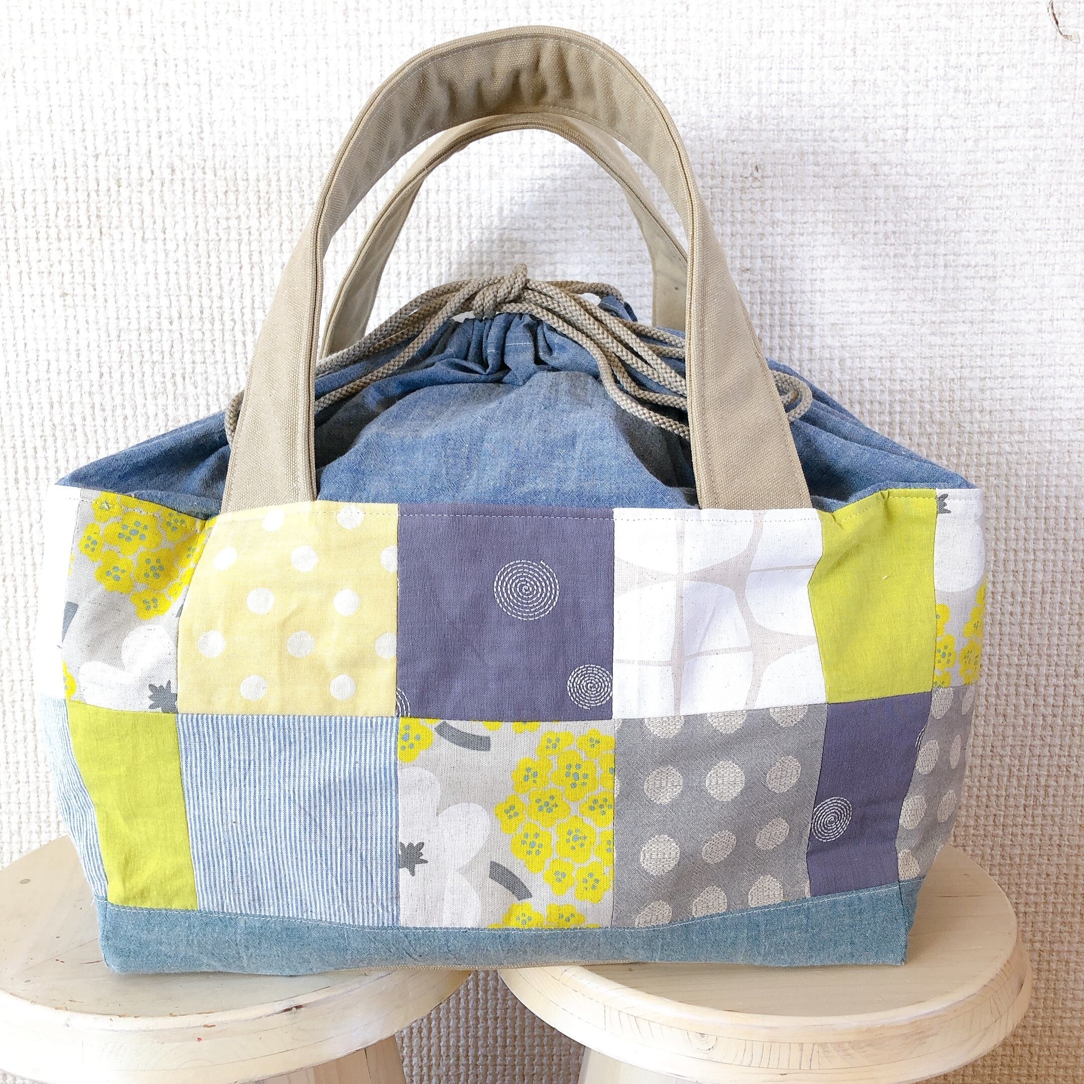 レジかごサイズのパッチワークなエコバック(ベージュ×グレーmix)