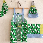低学年サイズ♪エプロン4点セット(サイズ125)ミドリパンダ