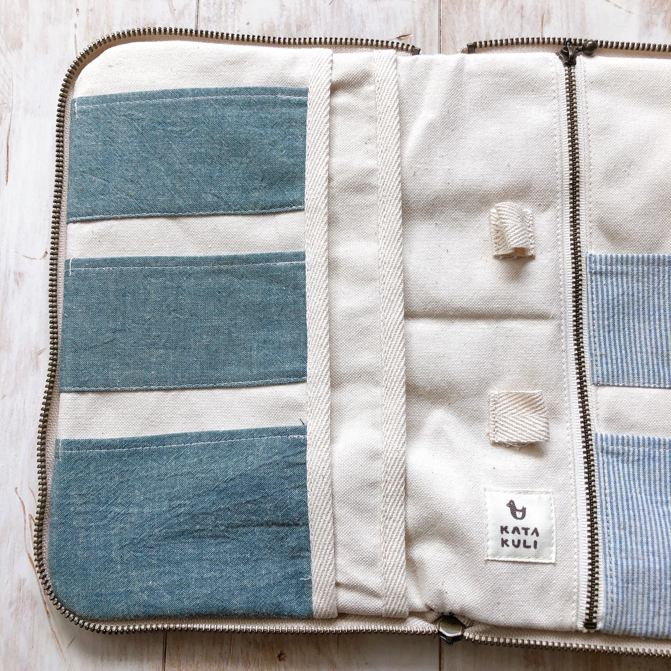 ケースがパカっと全開になるように、ファスナー止まりの部分に工夫をしています。