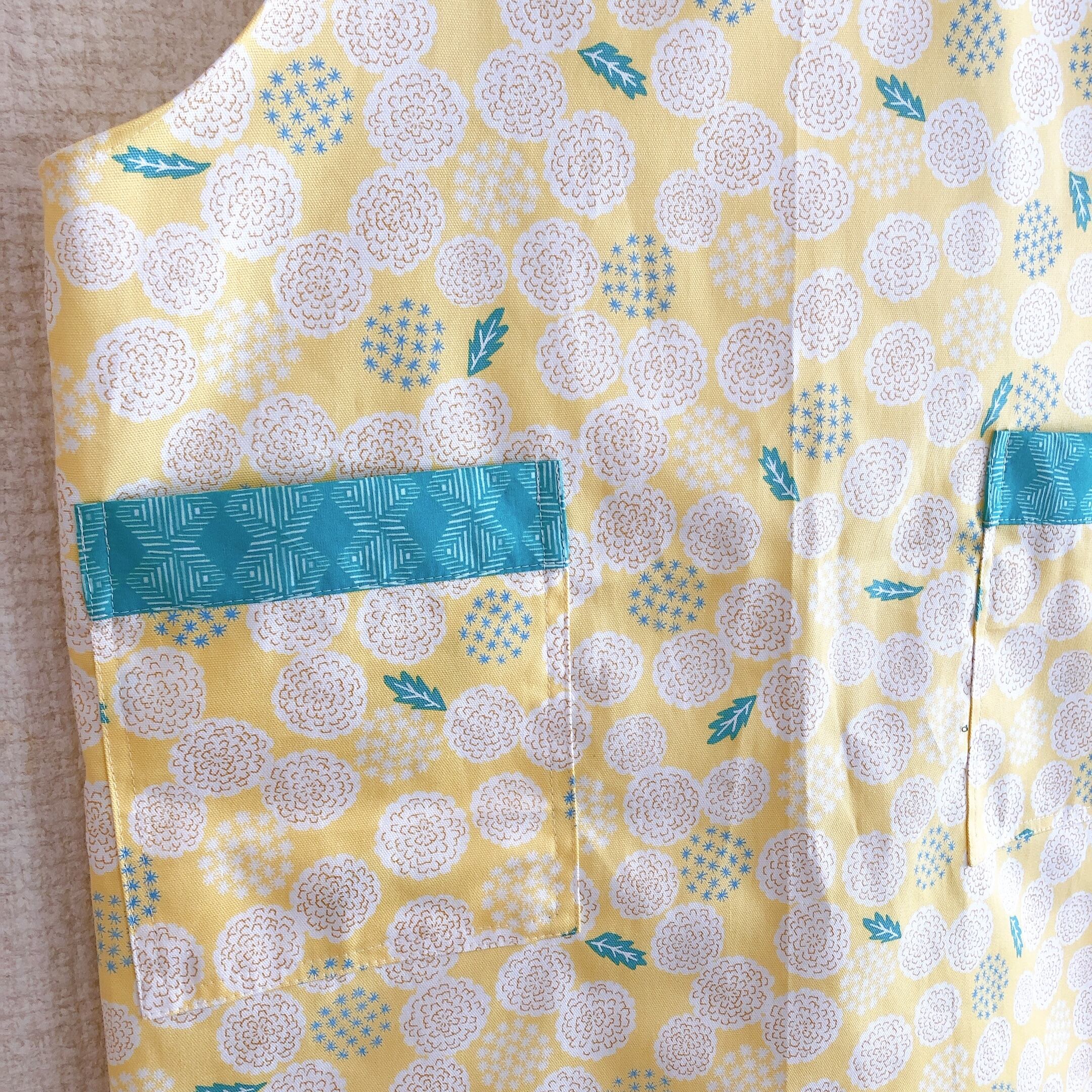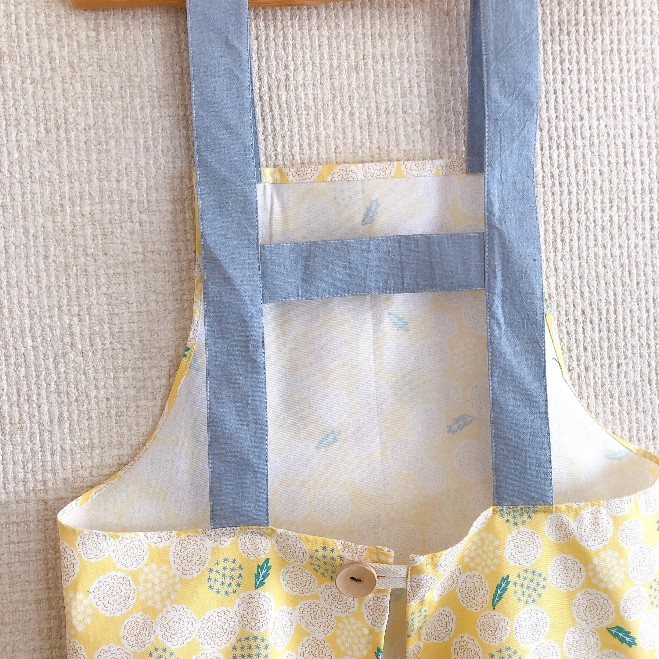 肩ひも後ろはHの形。おとなエプロン(マリーゴールド・キイロ)