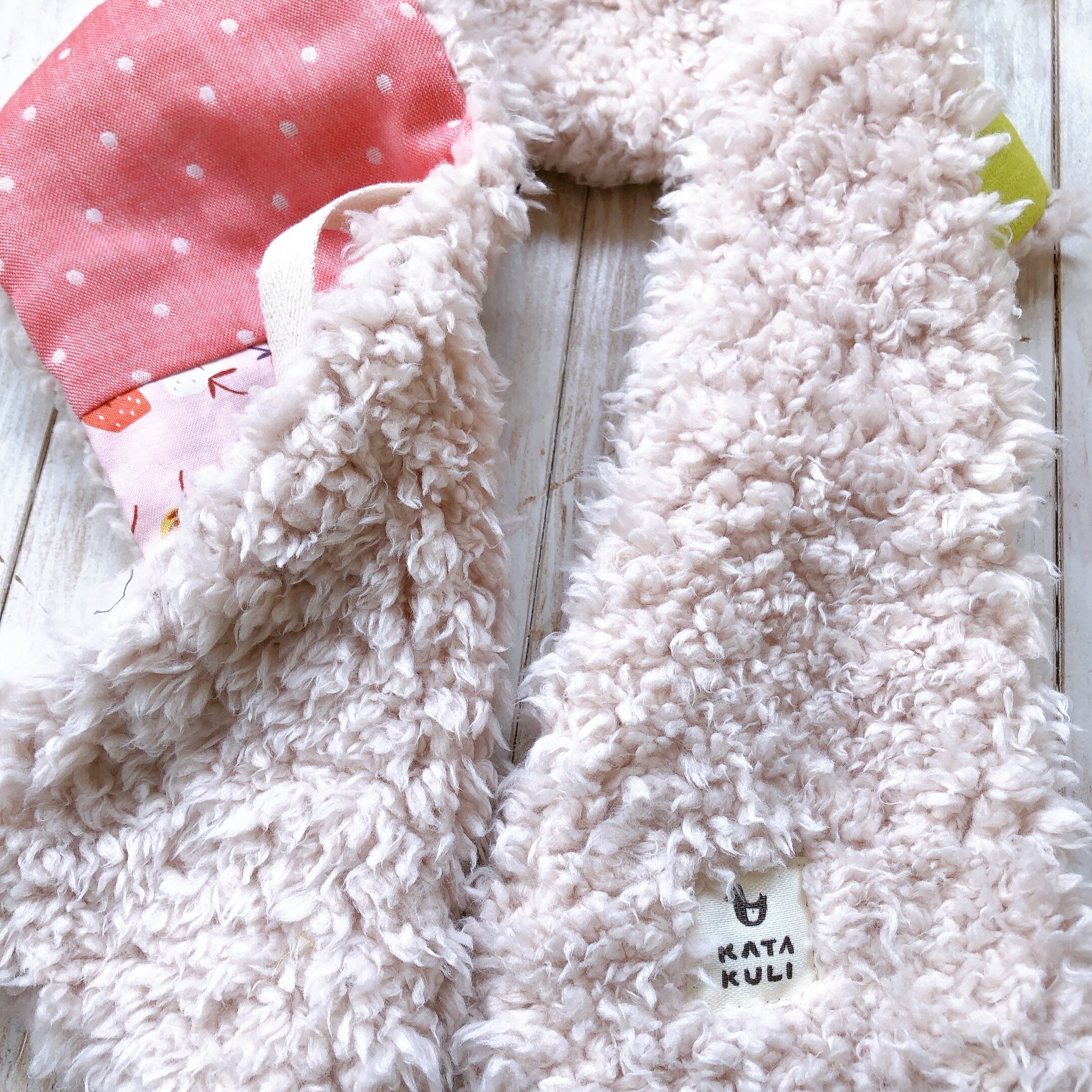 もこのこのボアが肌触りよく暖かくって 気持ちのいい子供用のマフラーです。