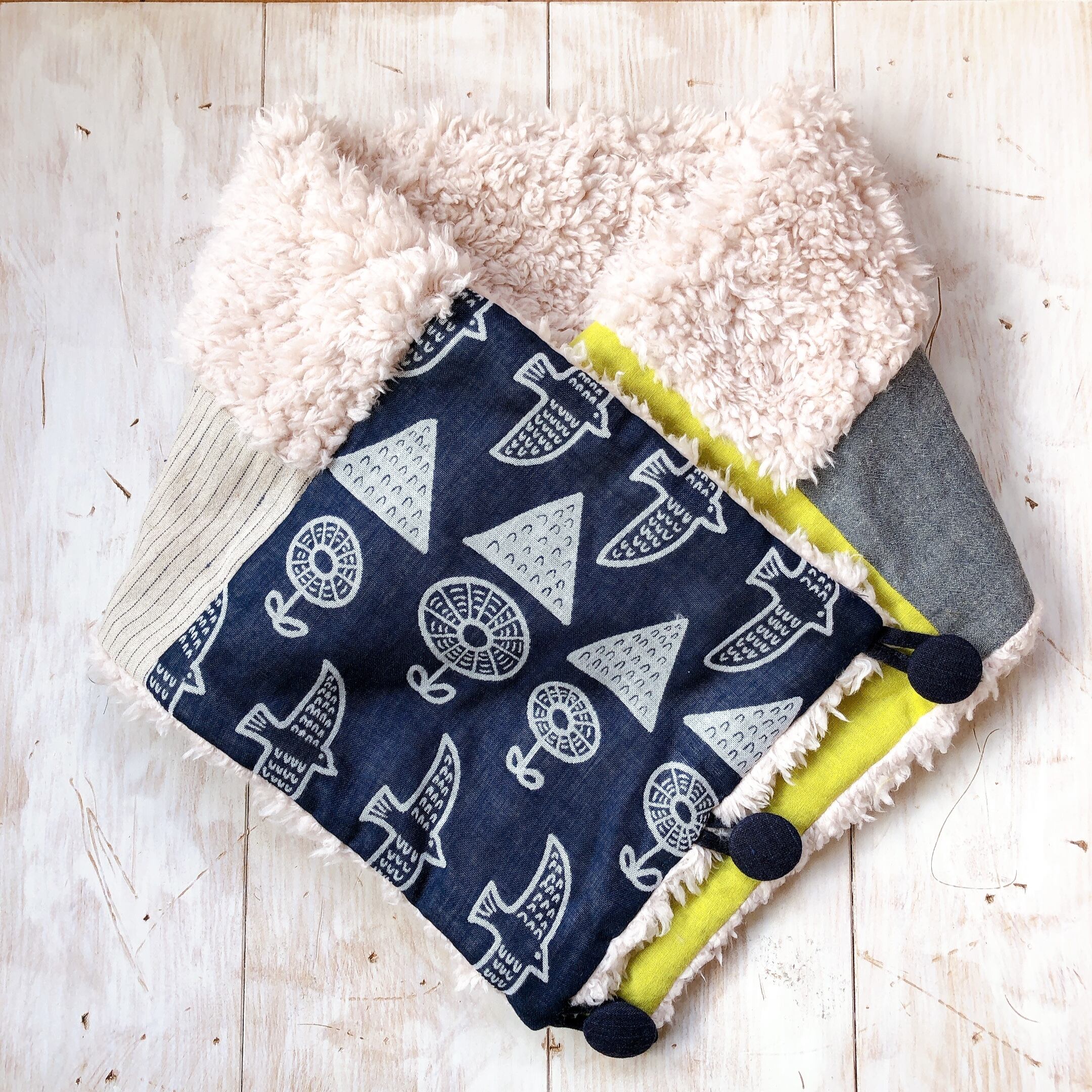 くるみボタンのあったかmixスヌード(ネイビーバード)