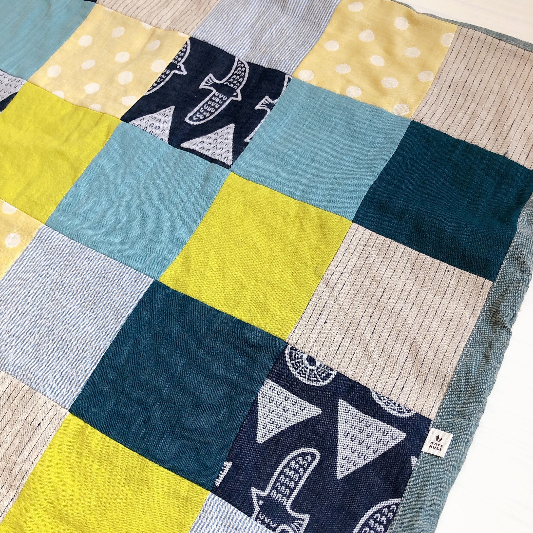 表面は、主にダブルガーゼなどのやわらかい生地を集めてパッチワーク