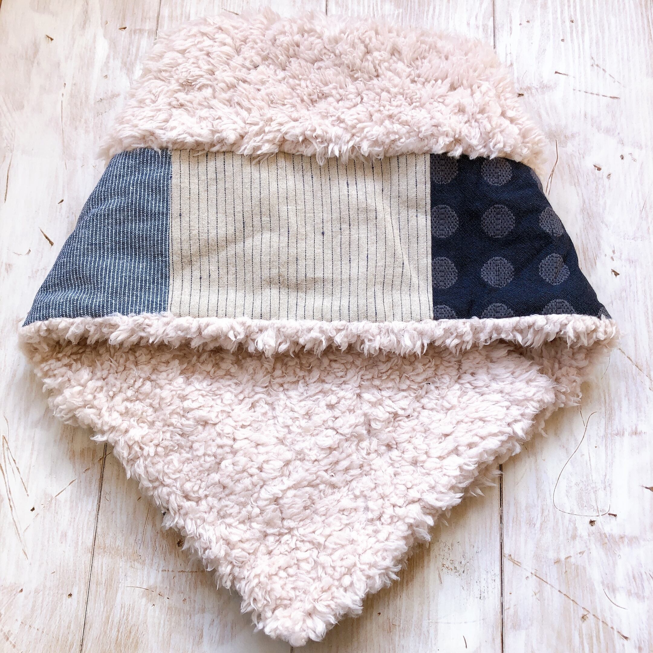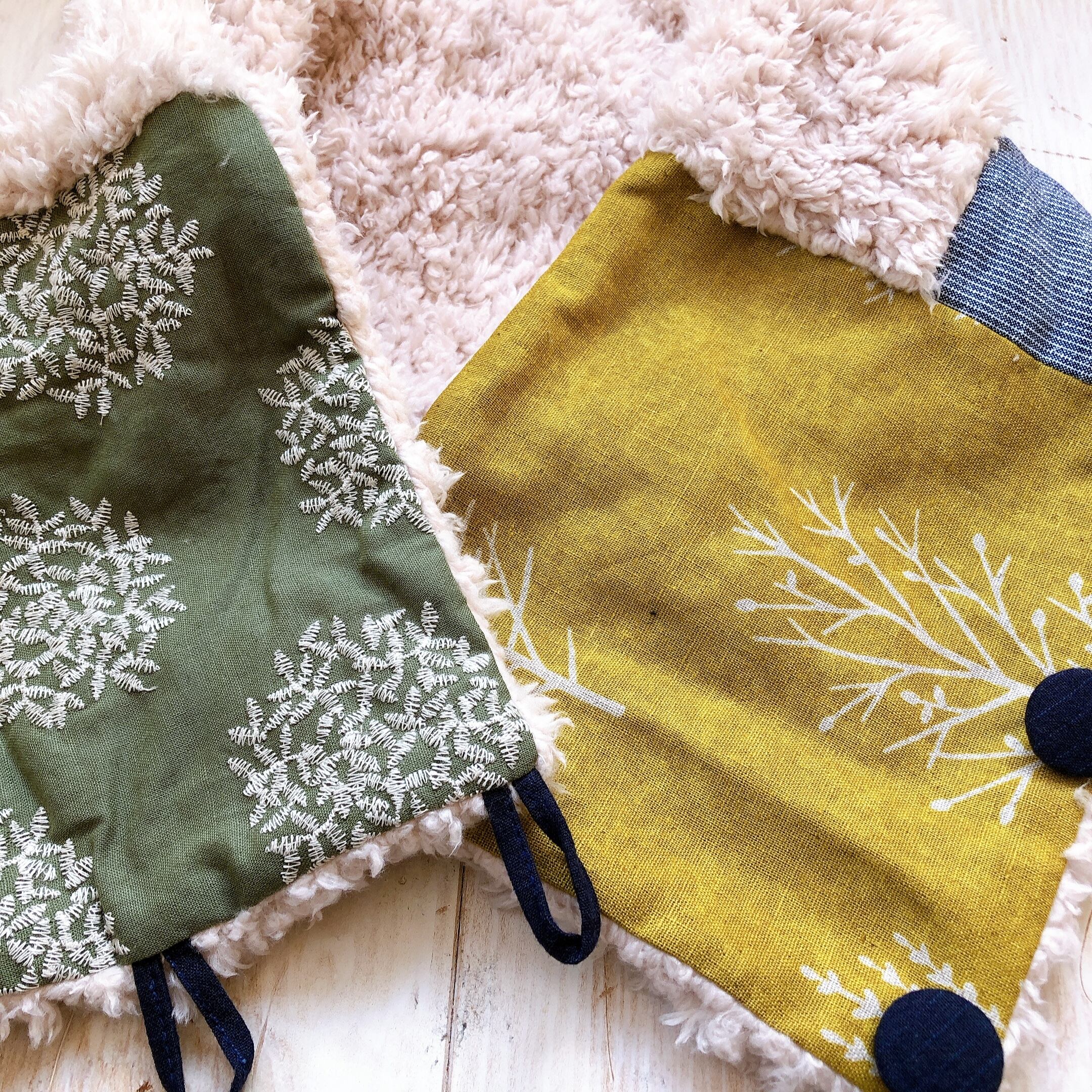 くるみボタンのあったかmixスヌード(刺繍あじさいカーキ)