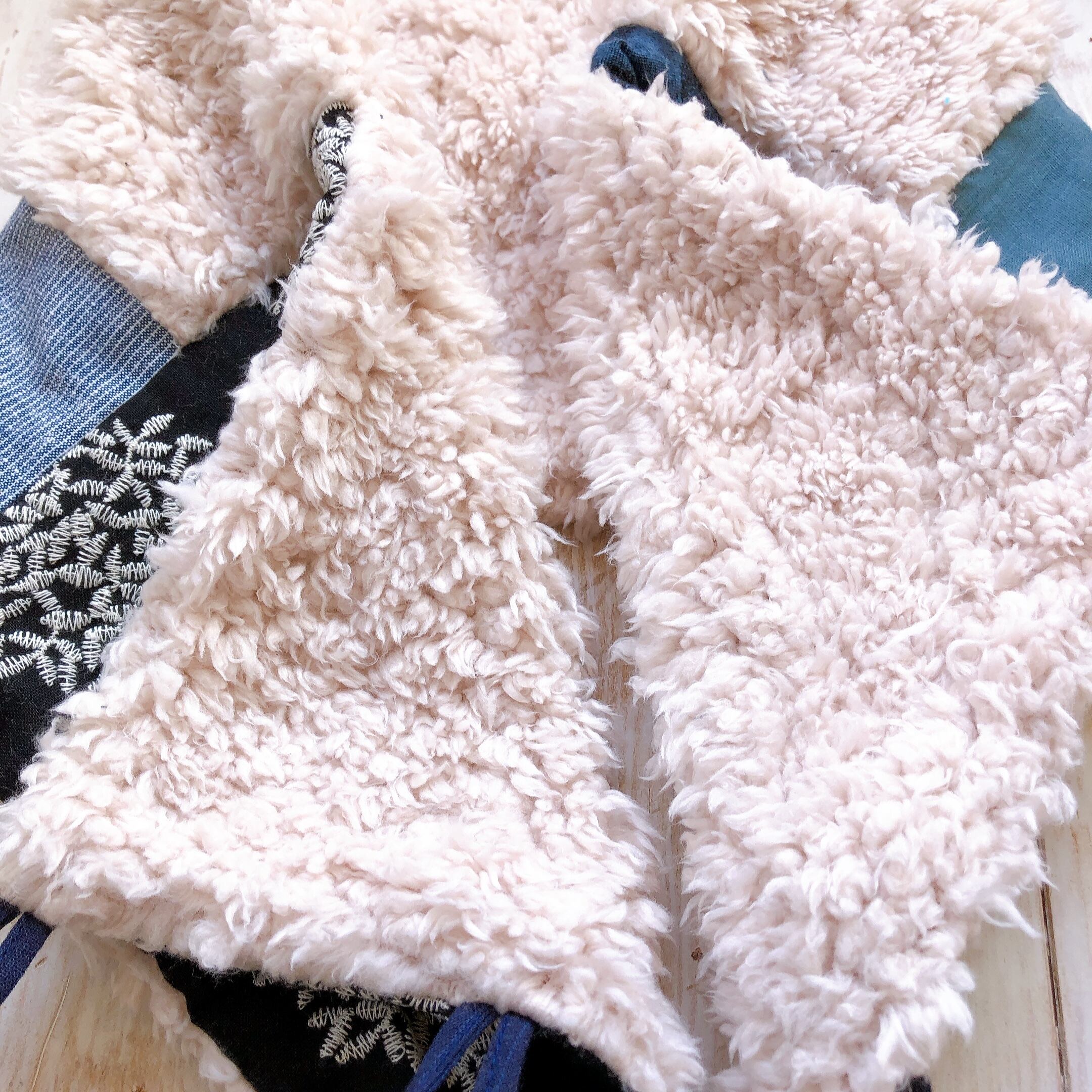 首元と裏面はふかふかなボアの生地を使っています。