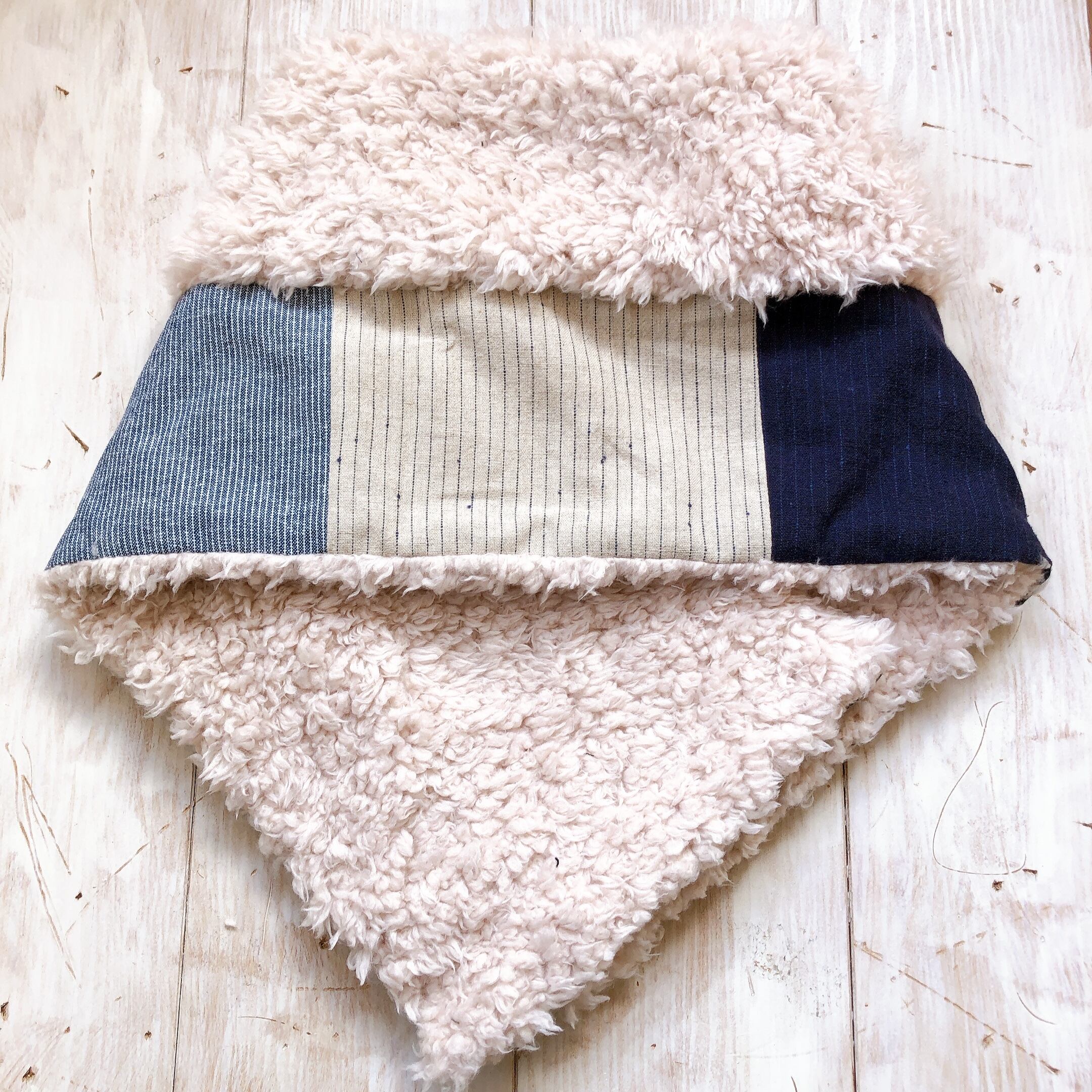 くるみボタンのあったかmixスヌード(刺繍あじさいネイビー)