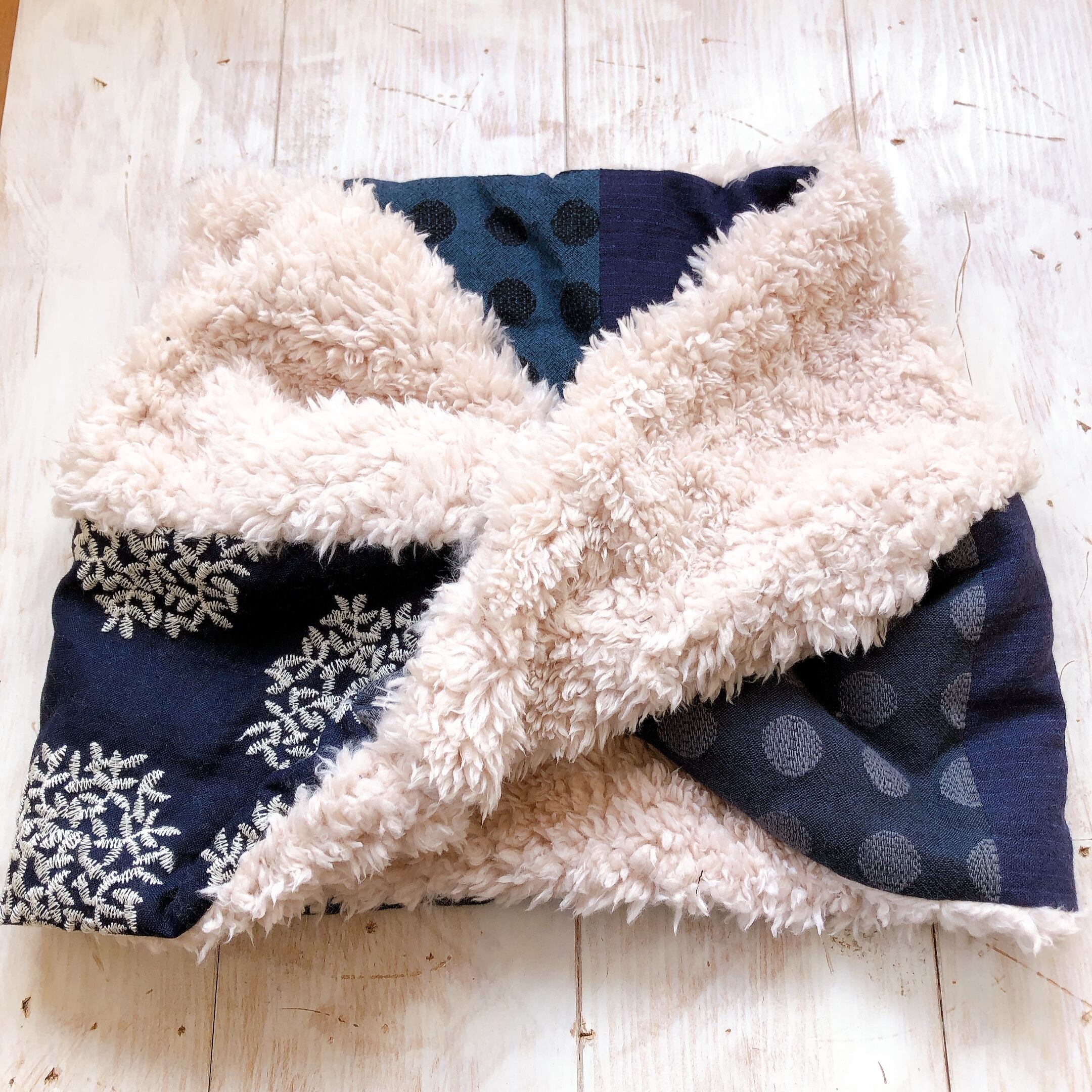 ねじれのmixスヌード(刺繍あじさいネイビー)