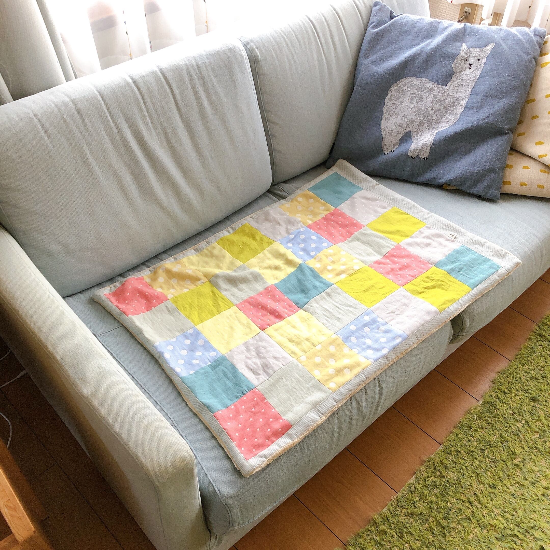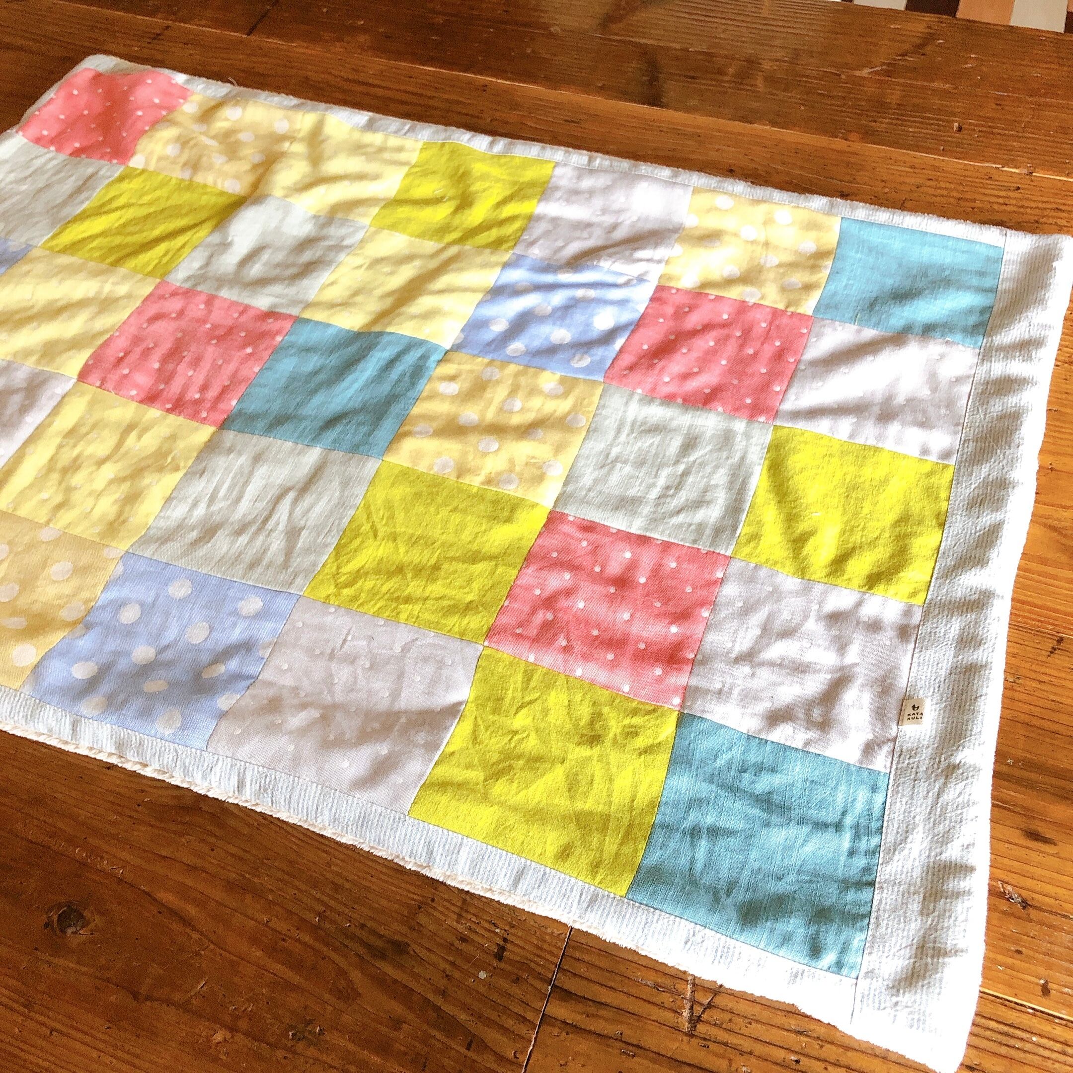 表面は、主にダブルガーゼなどのやわらかい生地を集めてパッチワーク