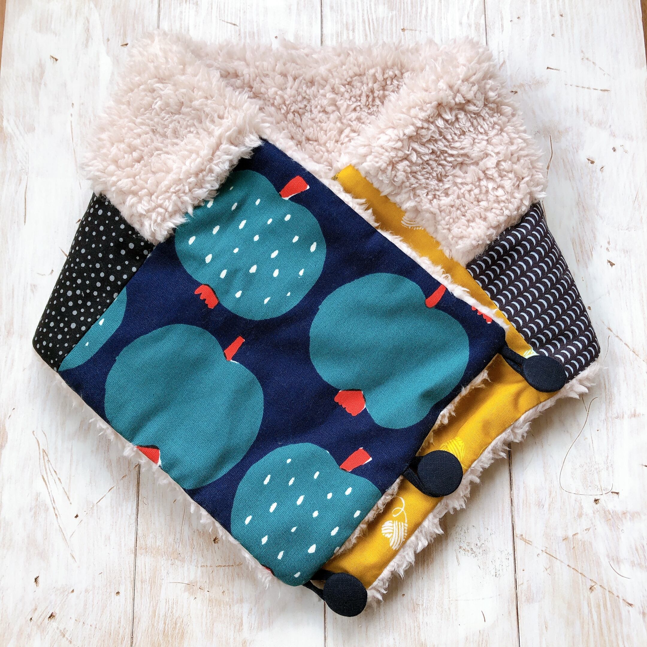 くるみボタンのあったかmixスヌード(あおリンゴ)