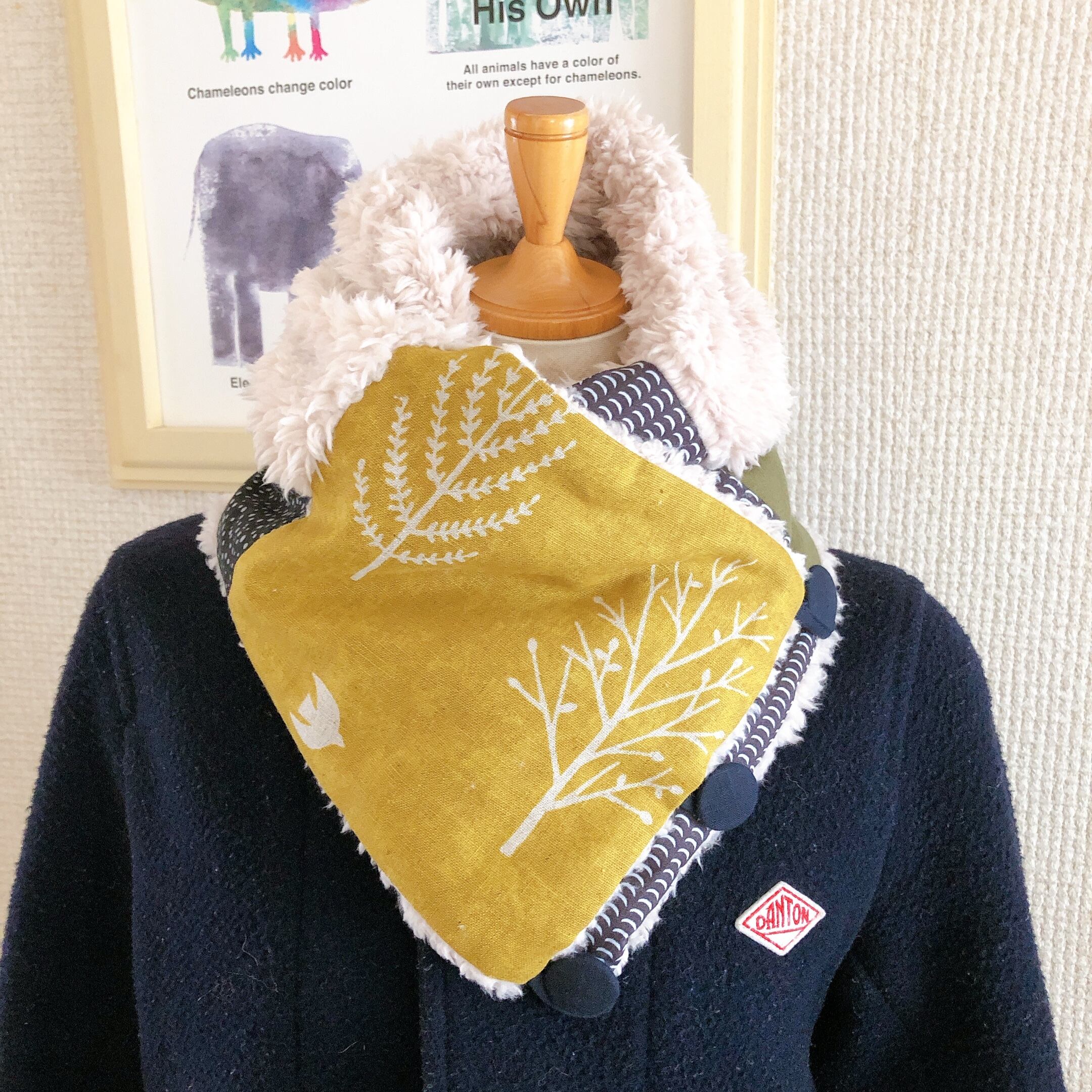 首元と裏面はふわふわあったかなボアの生地を使っています。