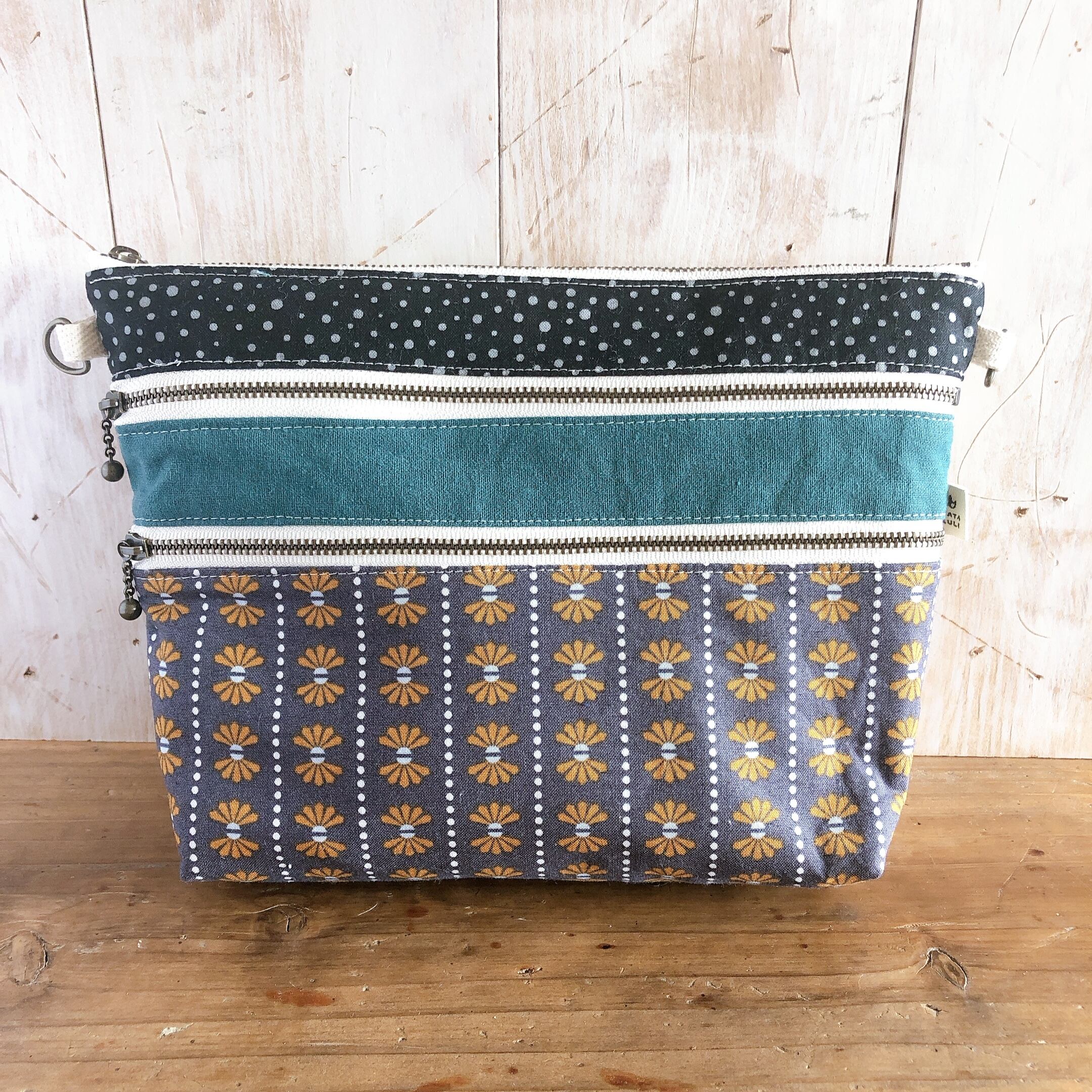 マチ付き3ファスナーポーチ*ポシェットにも♪(お花とライオン)
