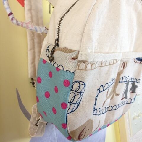 赤ちゃんファスナーリュック☆チェストストラップつき(動物園・ベージュ)