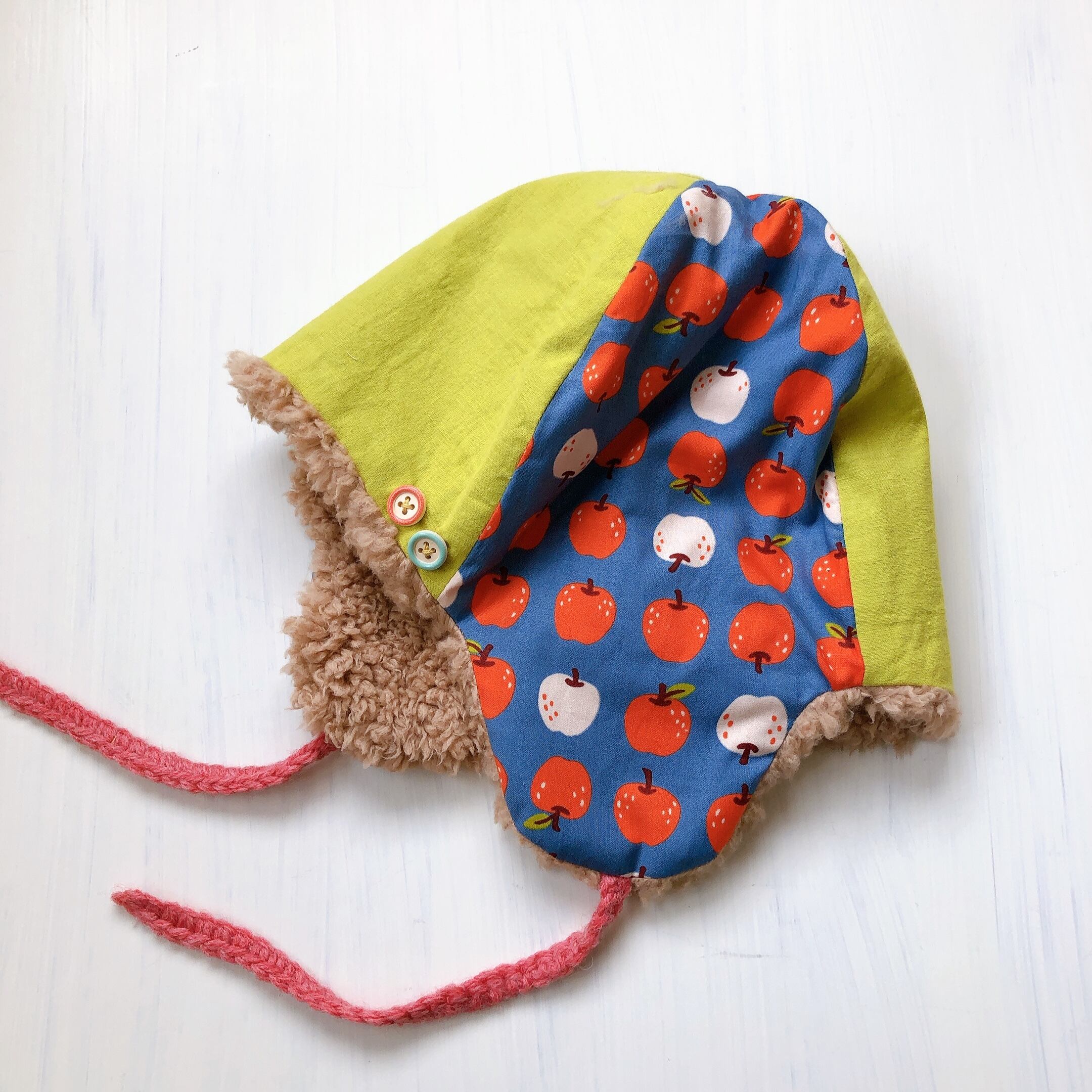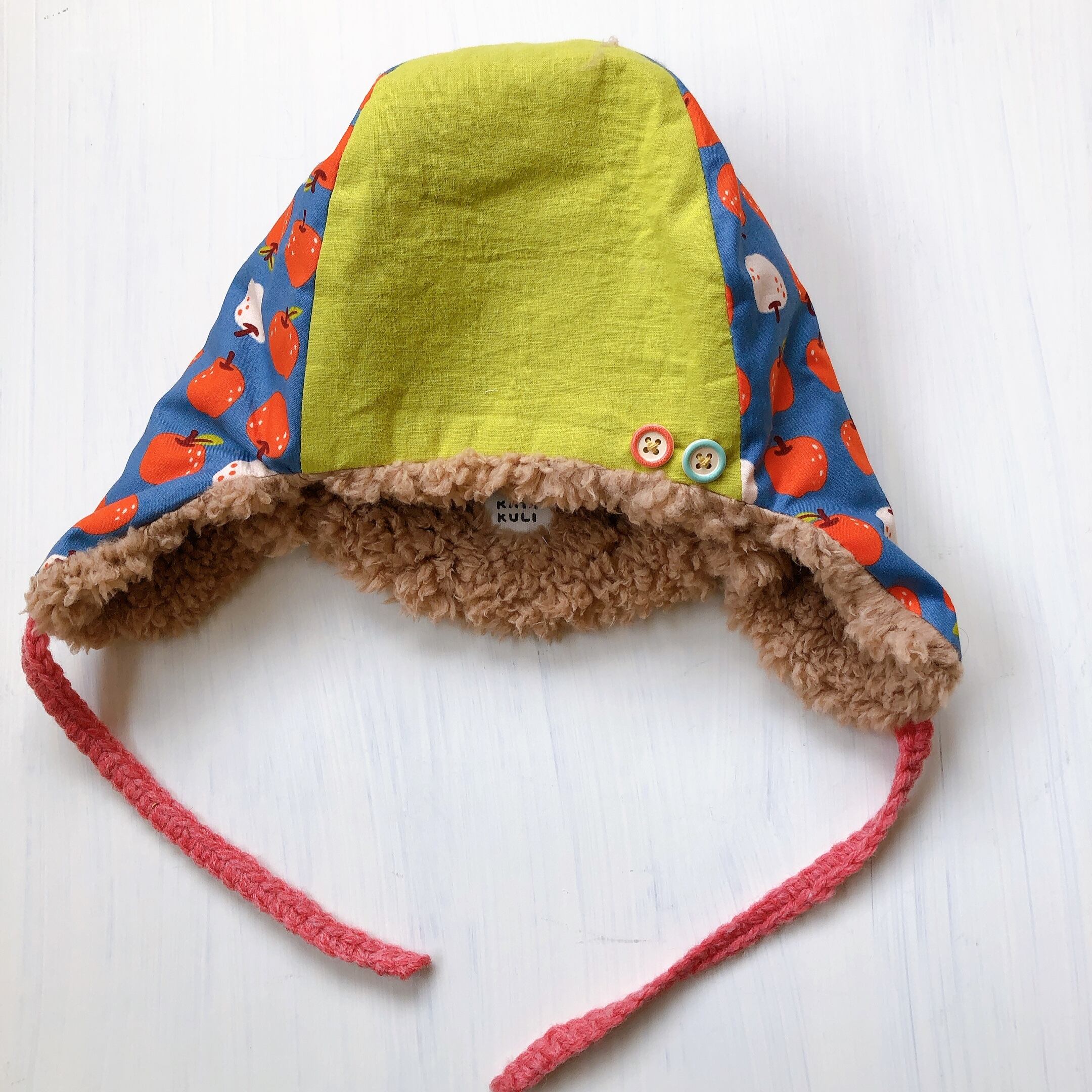 【オーダーのお品】こども冬帽子とキッズショートマフラーのset(りんごmix)