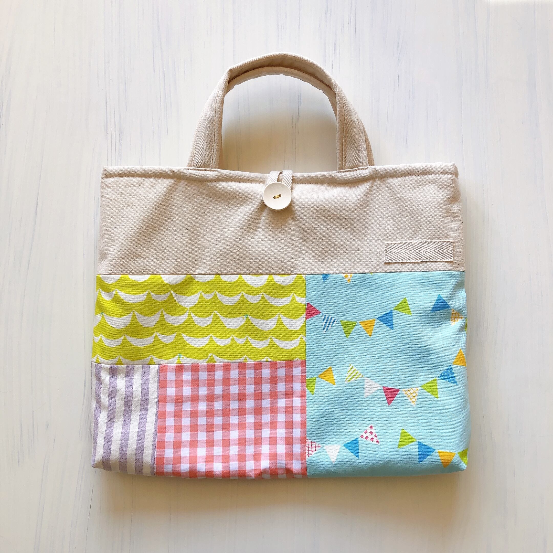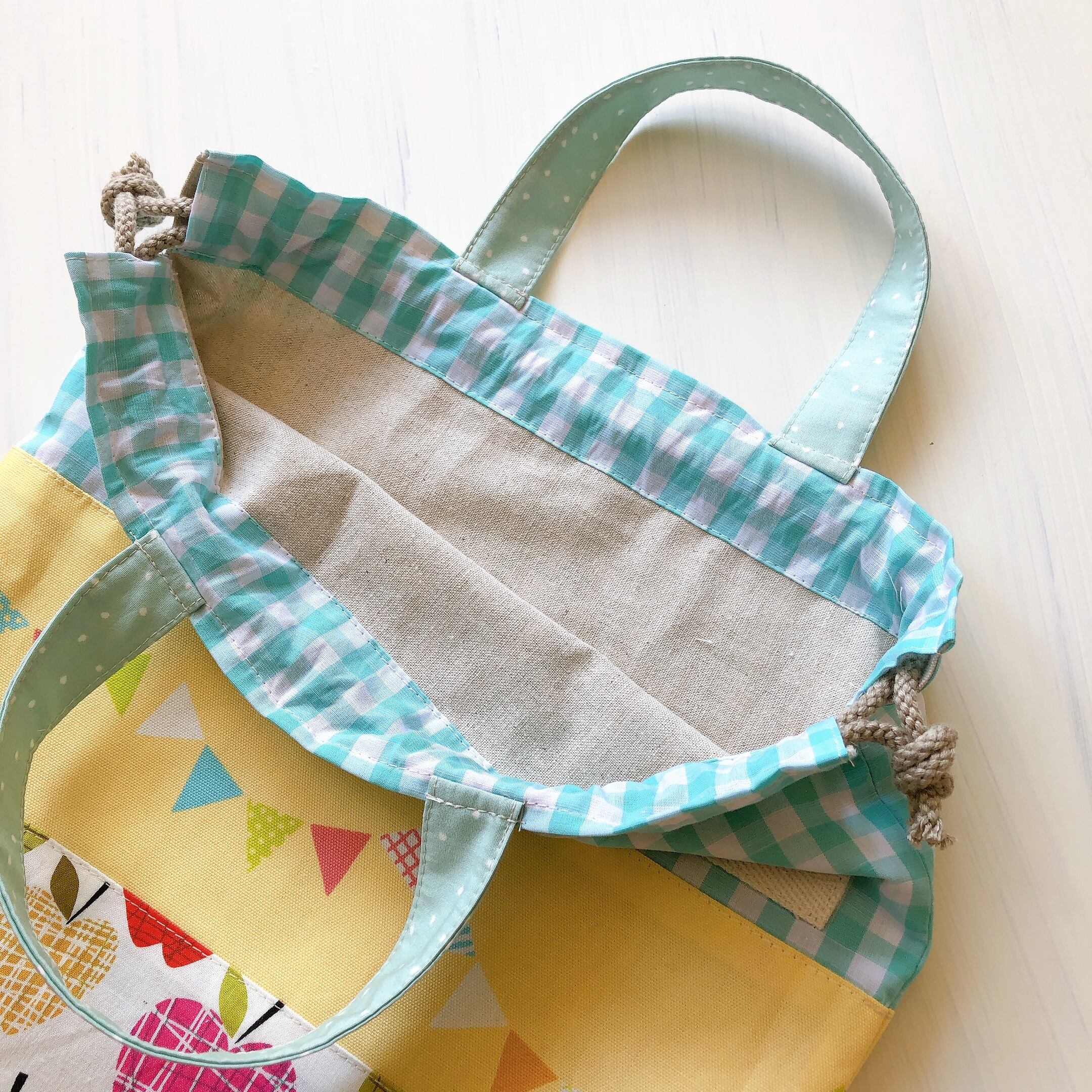 取っ手がついていて裏地付きの巾着です(*^^*)