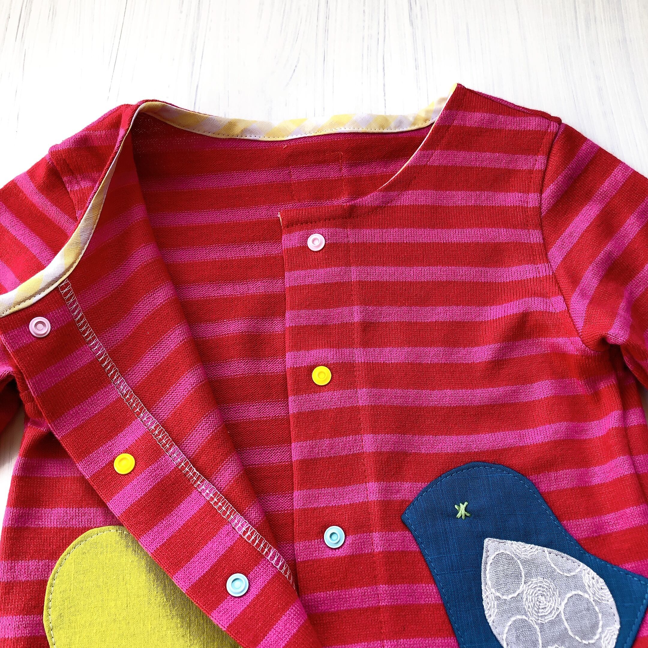 スナップボタンは全色違う色を使っていますので、お着換えの練習にも♪