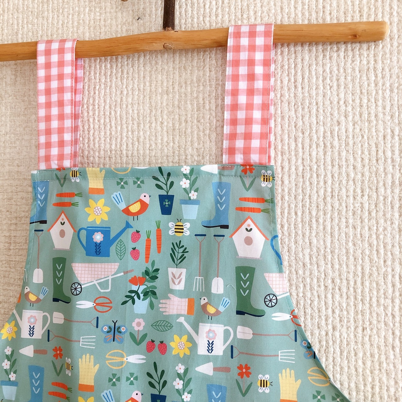 肩ひも後ろはHの形。おとなエプロン(ガーデニング×ギンガム)