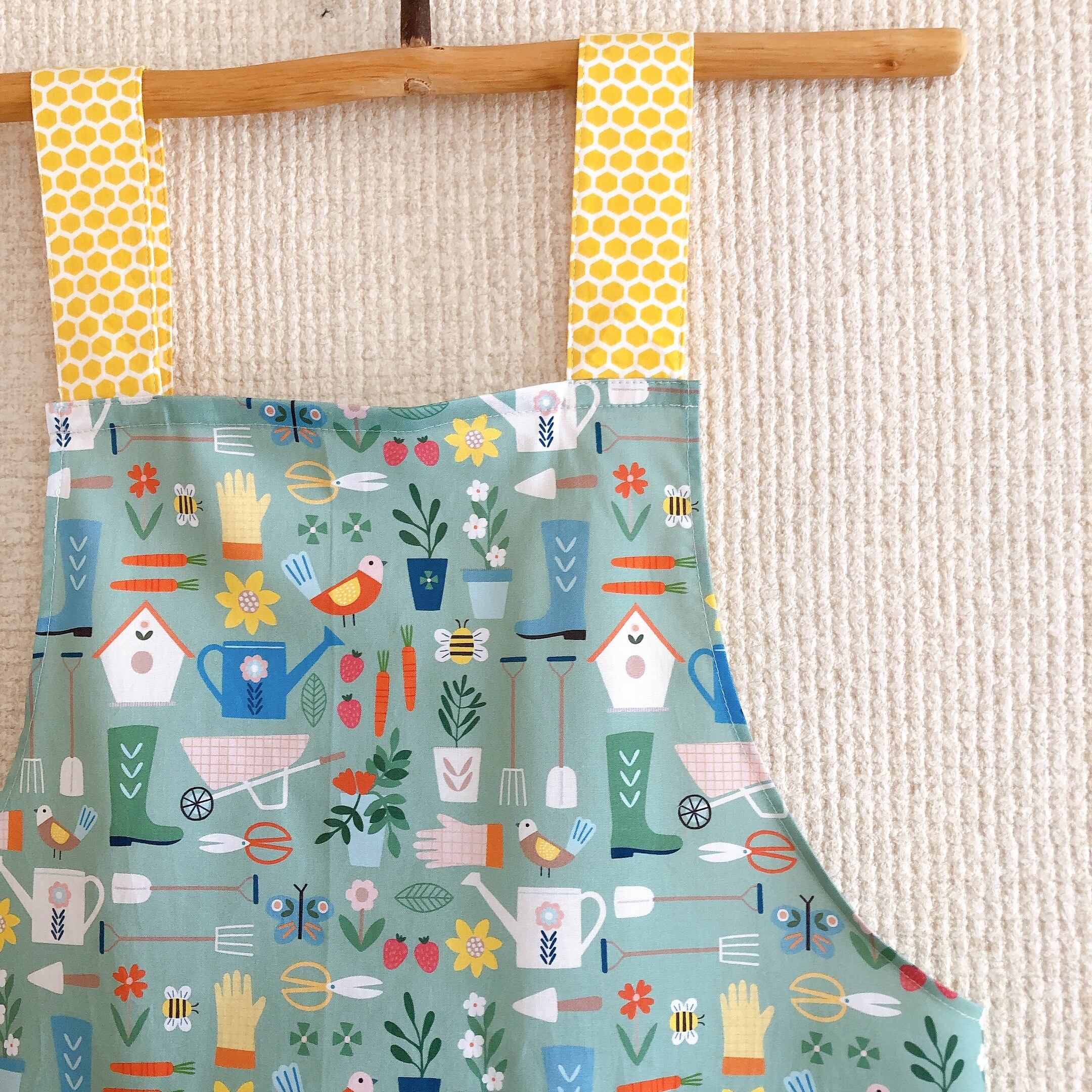 【オーダーのお品】肩ひも後ろはHの形。おとなエプロン(ガーデニング×ハニー)