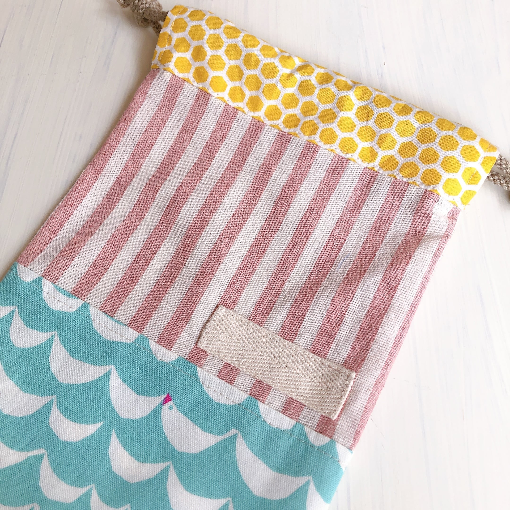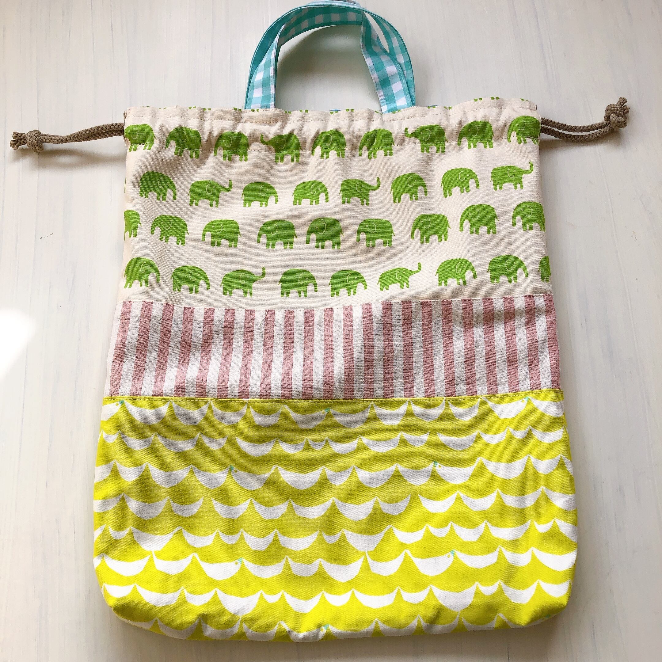 取っ手がついていて裏地付きの巾着です(*^^*)