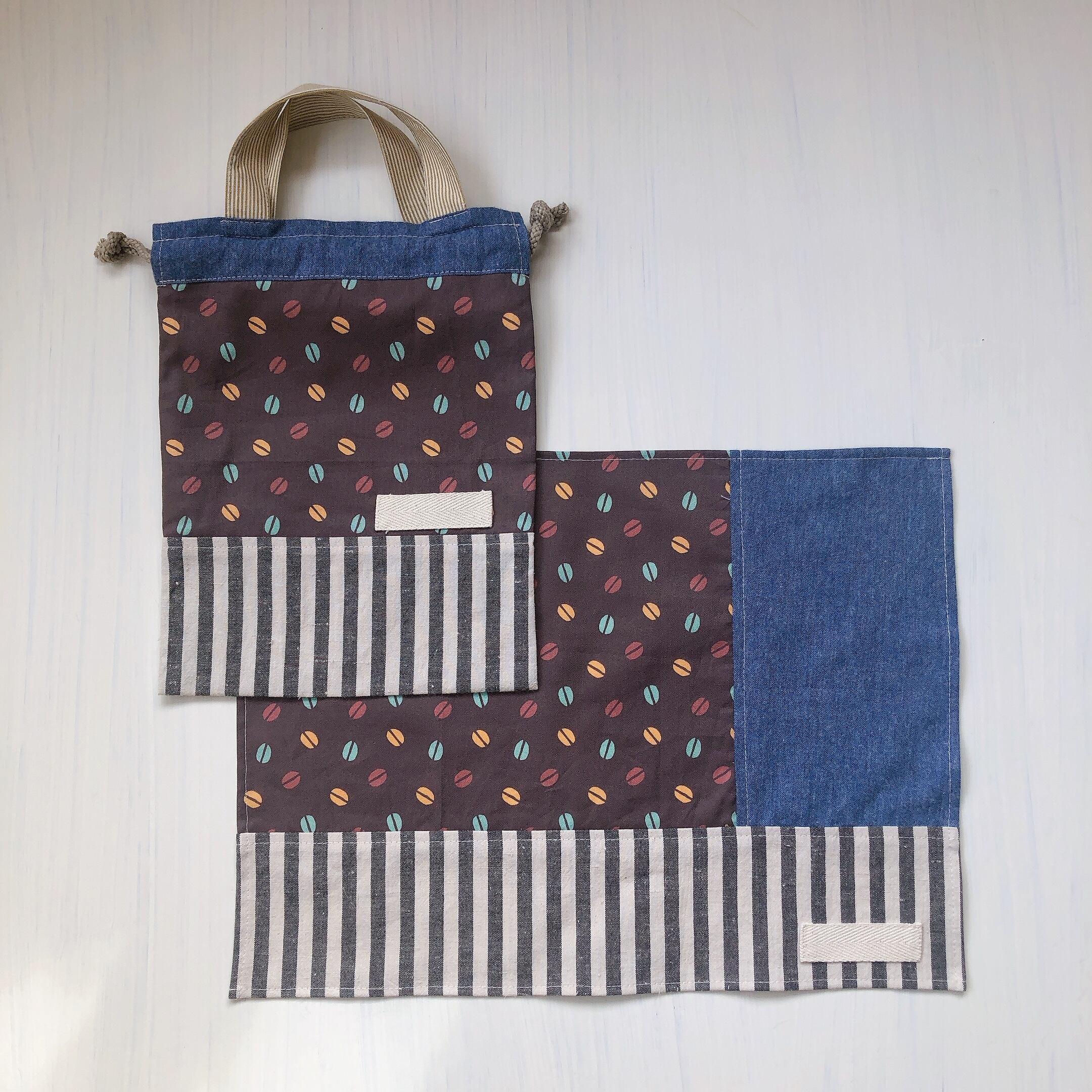 【オーダーのお品】A4サイズの手提げ&お道具入れ巾着&ランチマットと巾着3セット