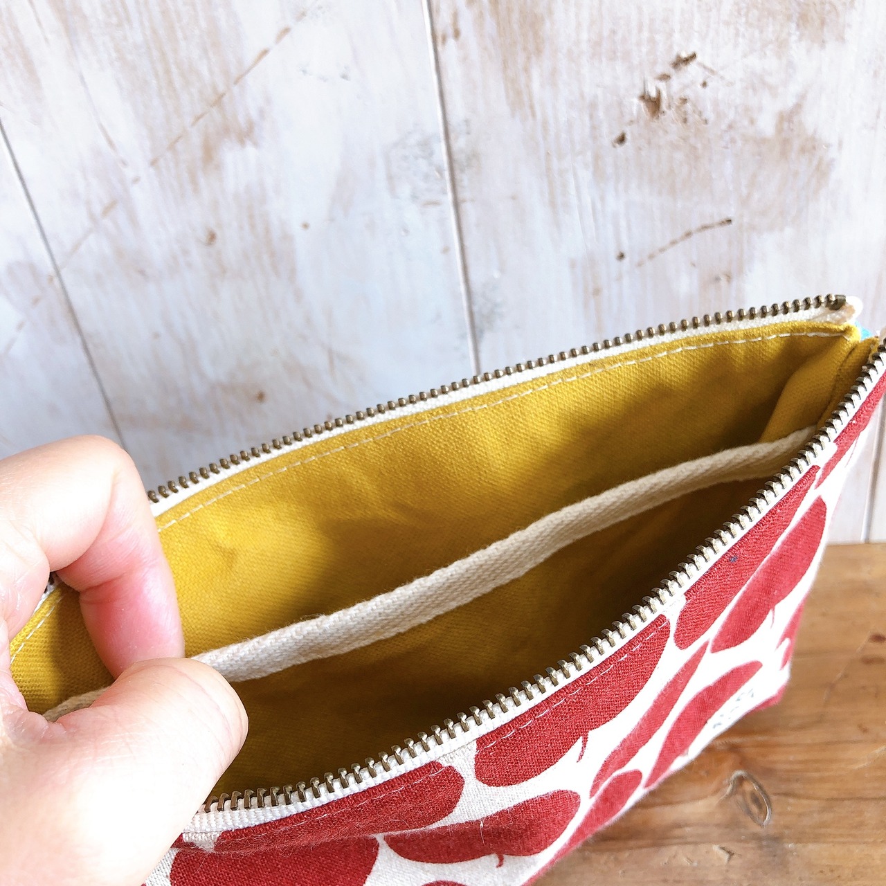内側に仕切りのあるポーチを作りました。
