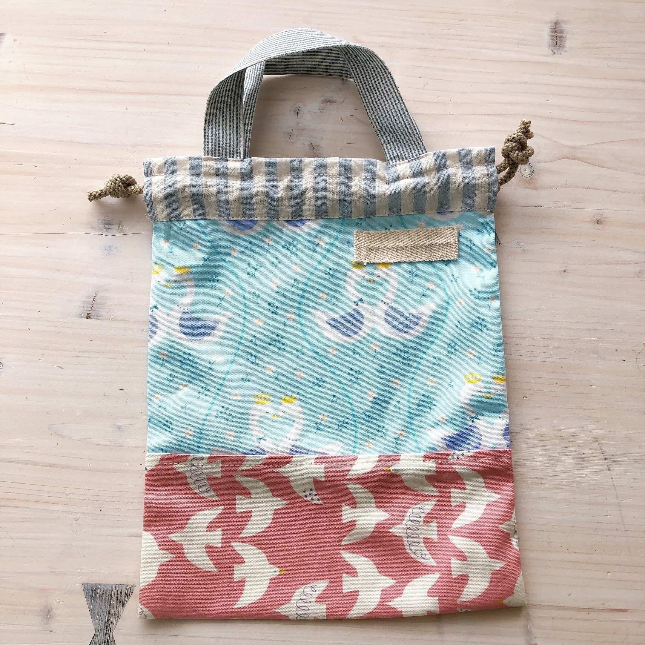 【オーダーのお品】ランチマットと巾着のセット(みずいろ気球)